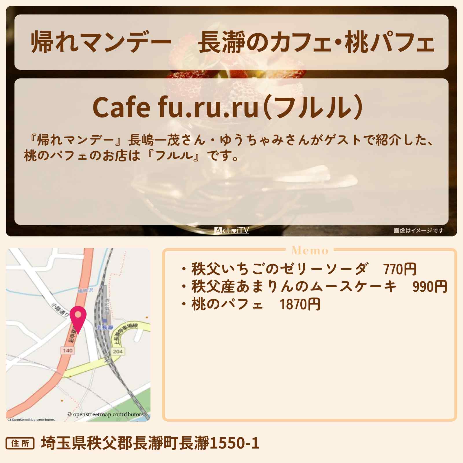 長瀞のカフェ・桃パフェ 上長瀞駅「Cafe fu.ru.ru(フルル)」