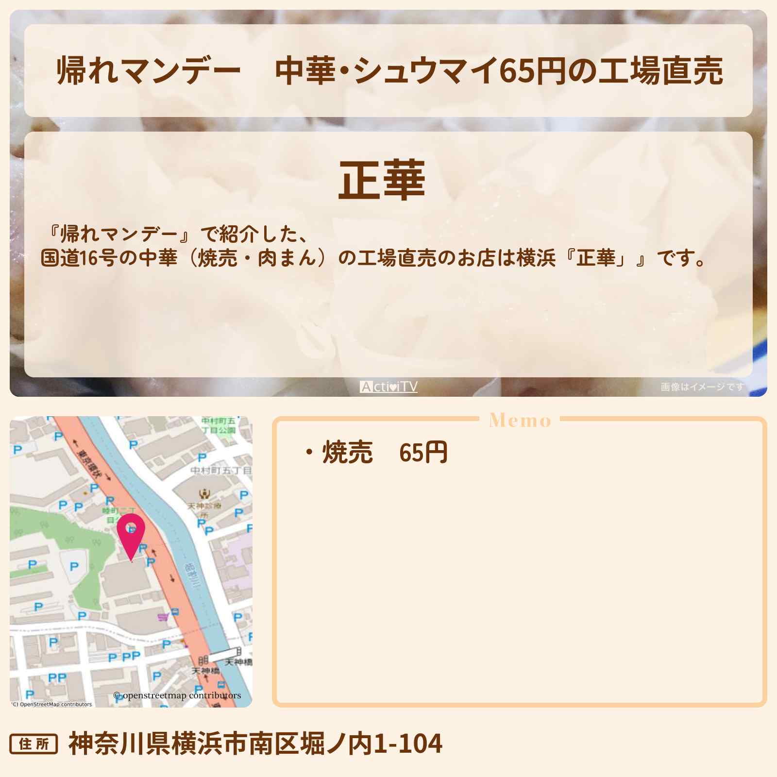 中華・シュウマイ65円の工場直売 吉野町駅「正華」