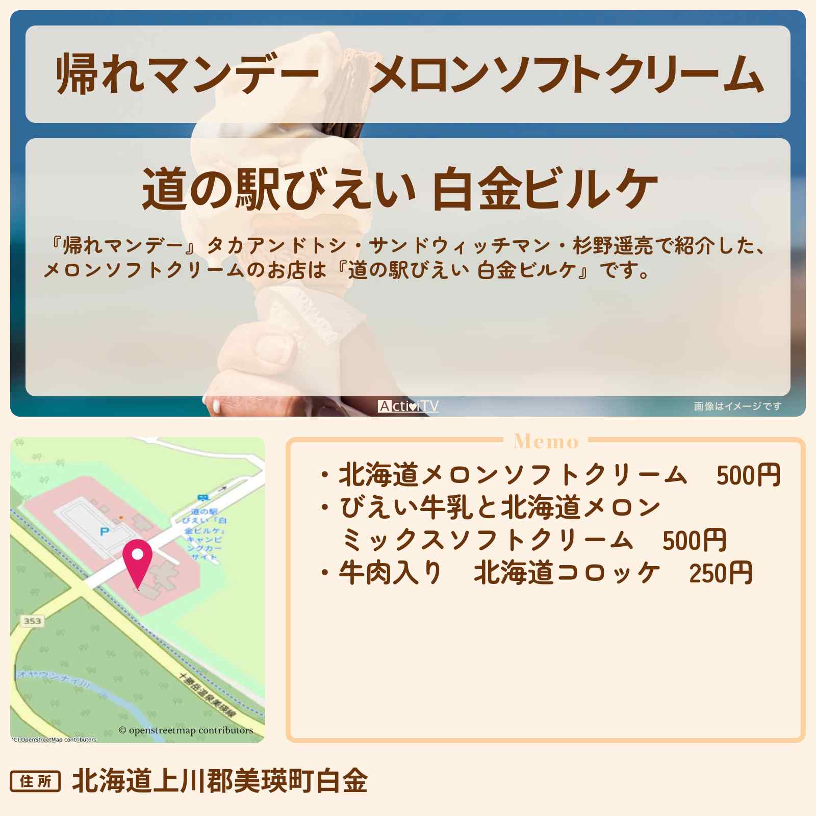 メロンソフトクリーム「道の駅びえい 白金ビルケ」