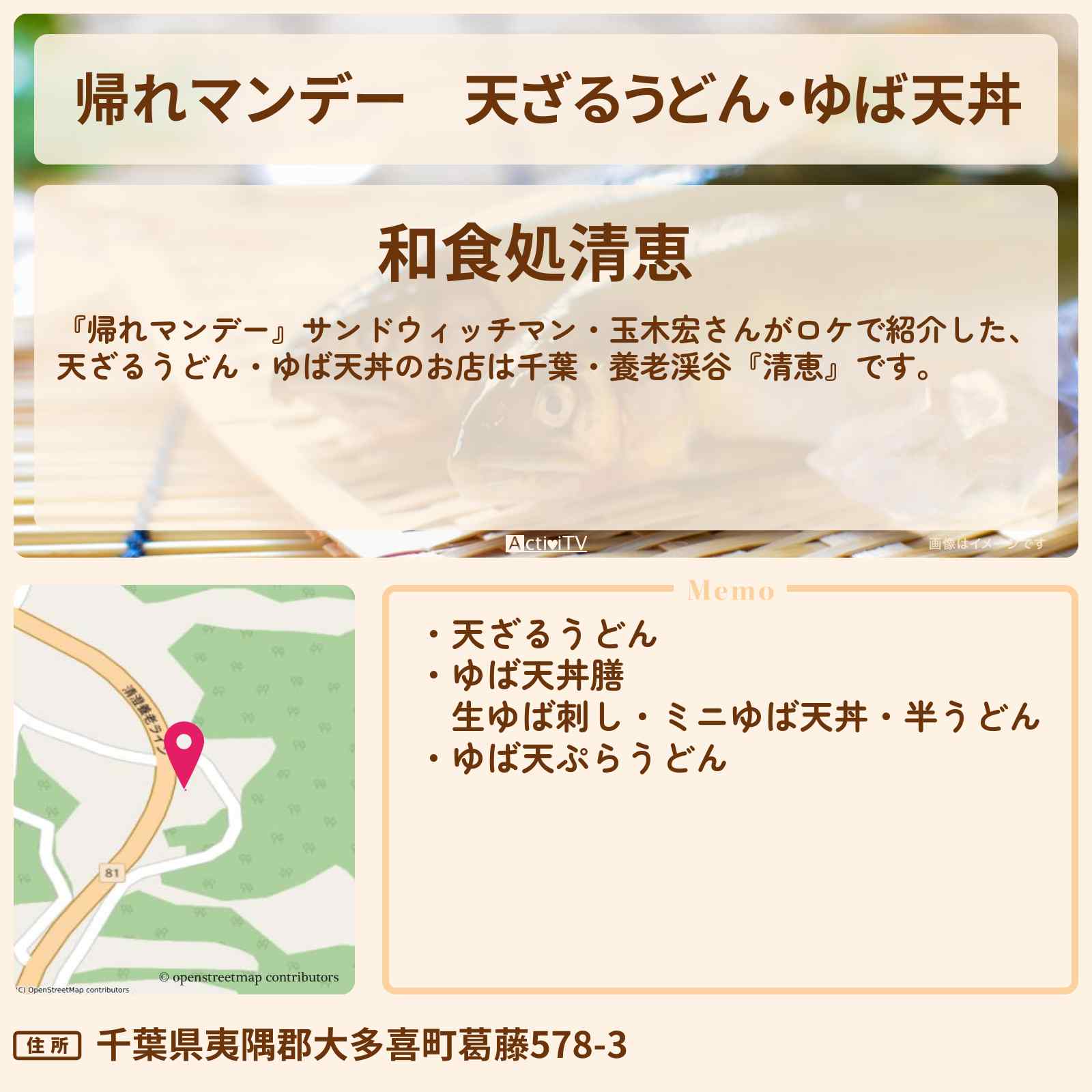 | 住所 | 千葉県夷隅郡大多喜町葛藤578-3 |