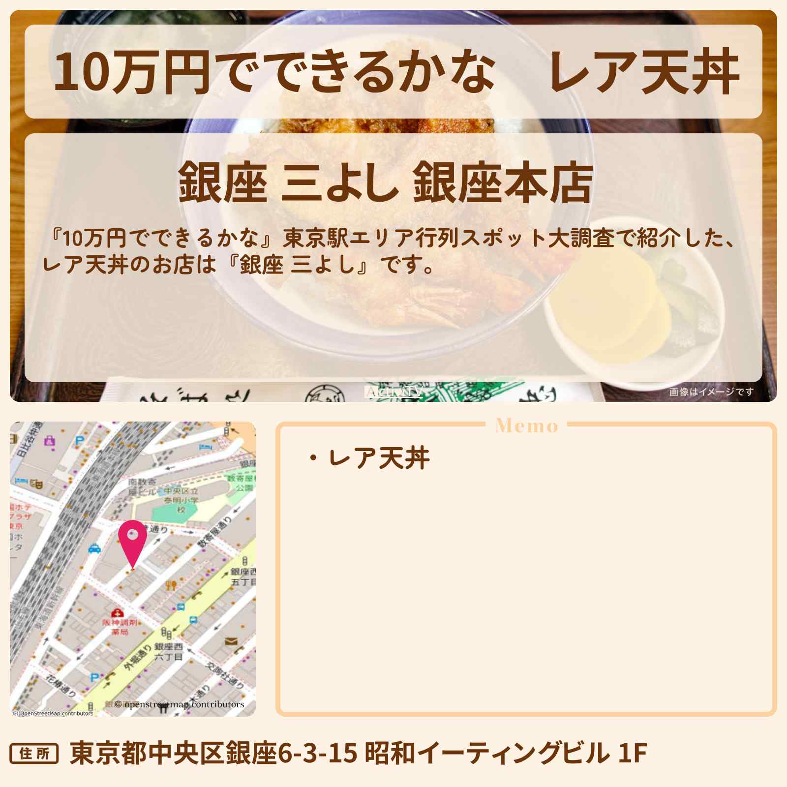 【10万円でできるかな】レア天丼『銀座 三よし』東京駅エリアで行列のお店の場所