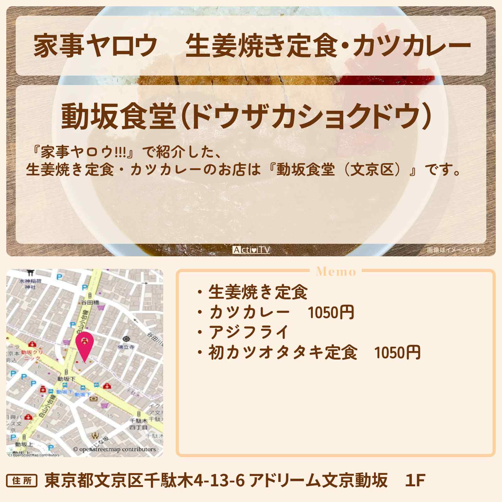 生姜焼き定食・カツカレー 田端駅「動坂食堂(ドウザカショクドウ)」