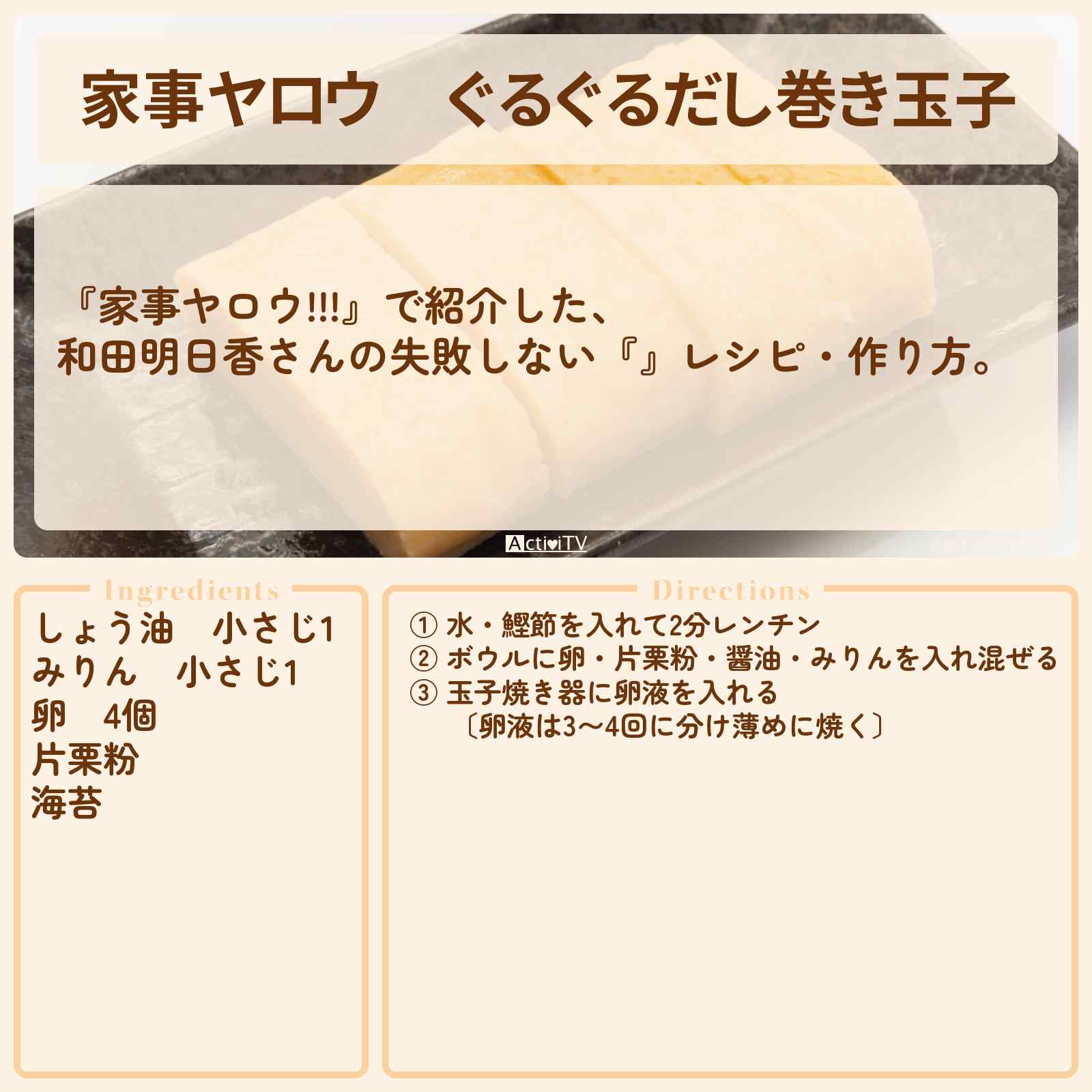 放送の【家事ヤロウ!!!】で紹介した、和田明日香さんの失敗しない『』レシピ・作り方。