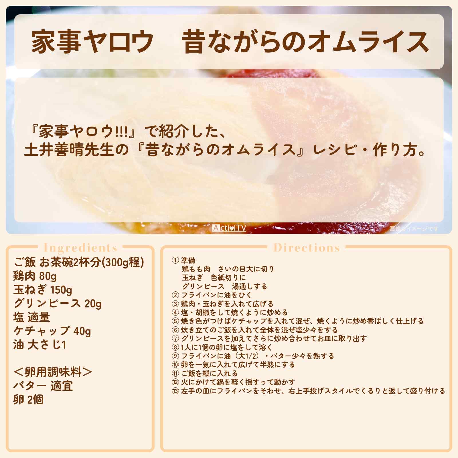 放送の【家事ヤロウ!!!】で紹介した、土井善晴先生の『昔ながらのオムライス』レシピ・作り方。
