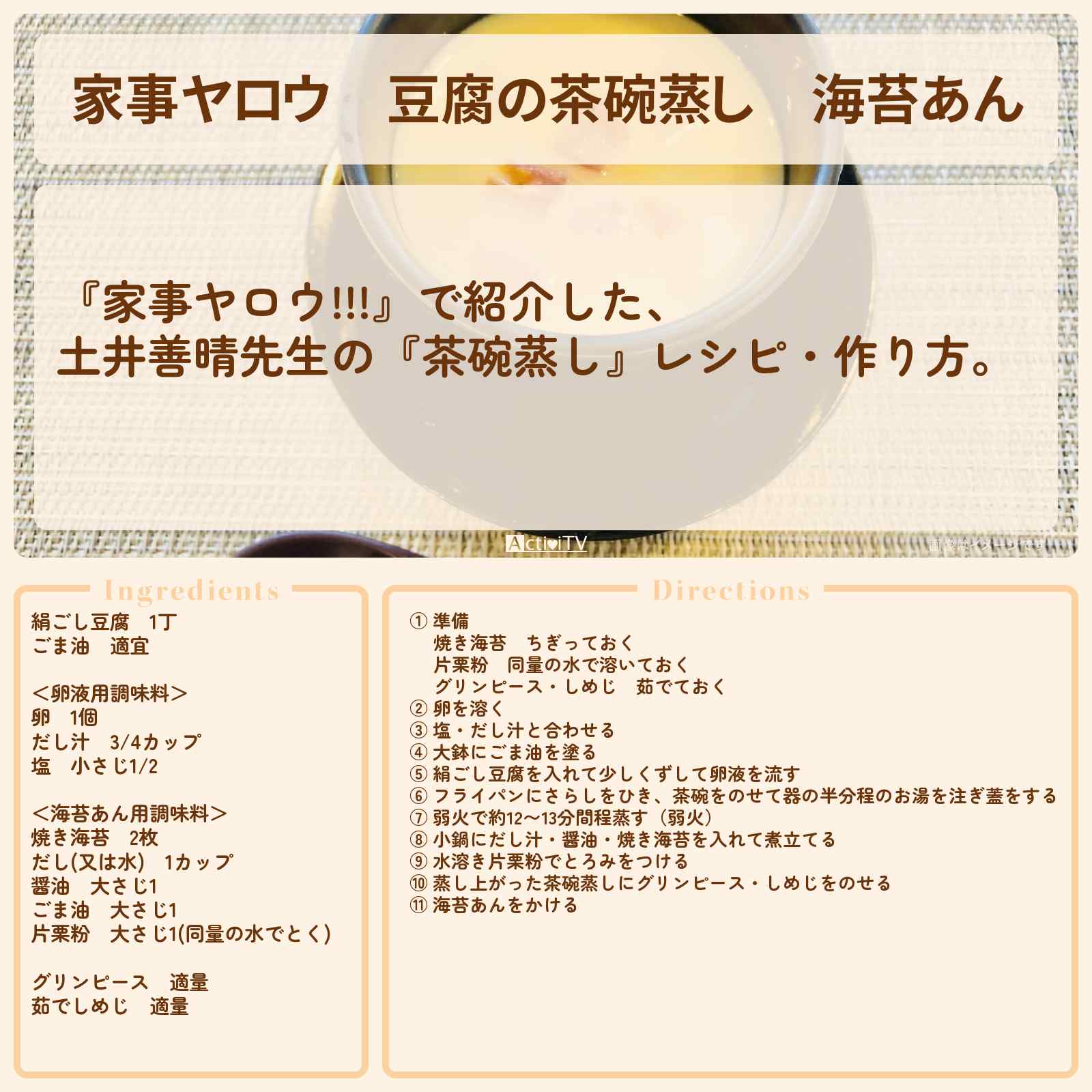 【家事ヤロウ】『豆腐の茶碗蒸し 海苔あん』土井善晴先生のレシピ・作り方
