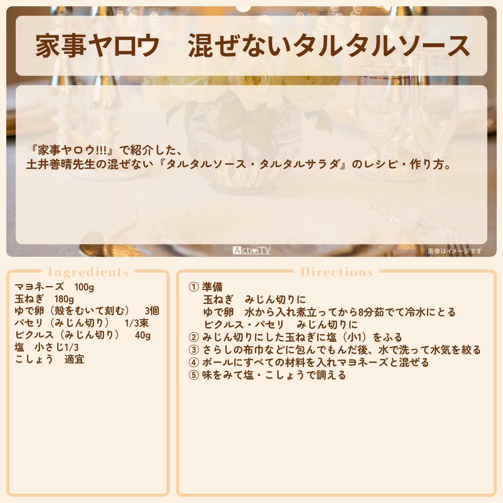 【家事ヤロウ】混ぜない『タルタルソース』土井善晴先生のレシピ・作り方