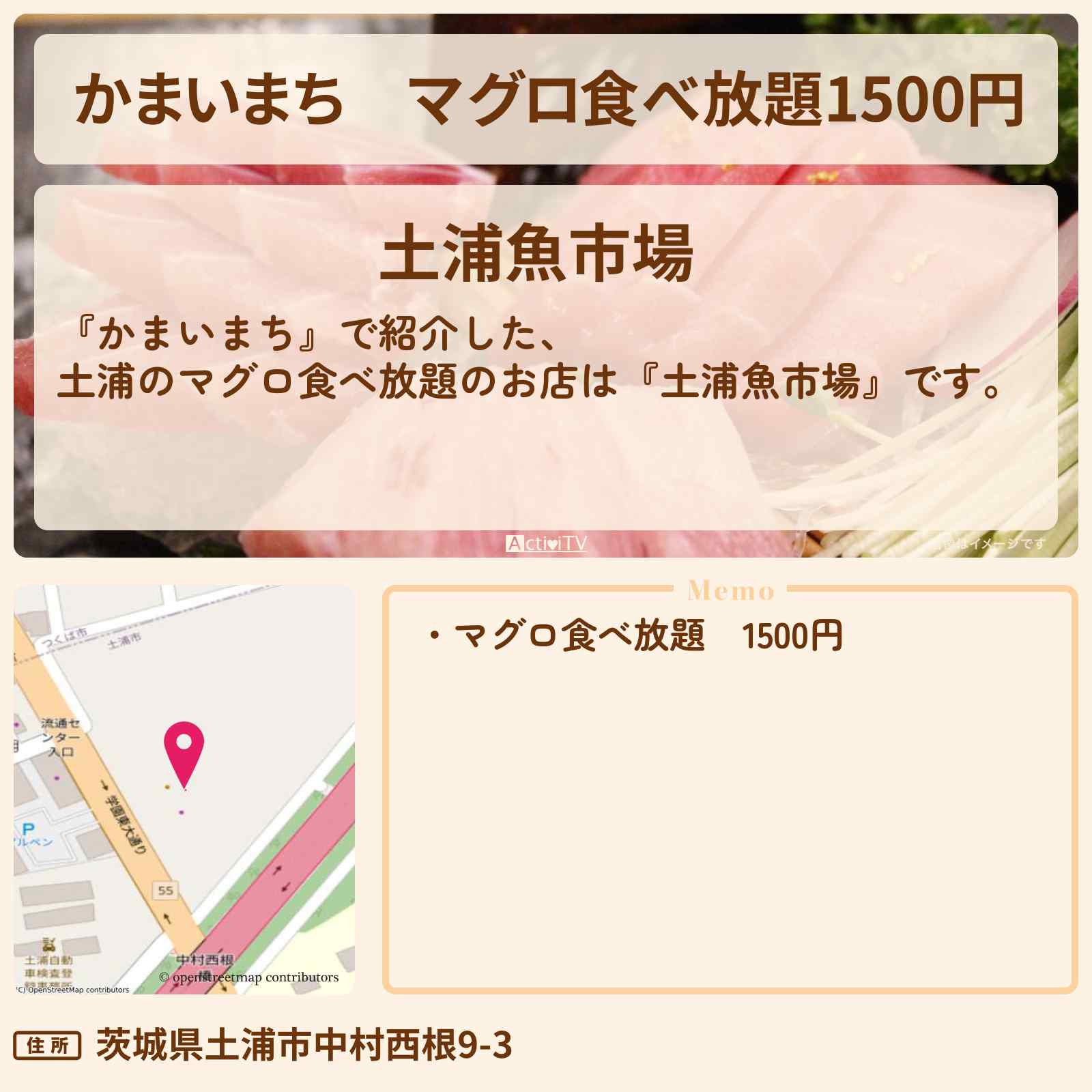 マグロ食べ放題1500円 荒川沖駅「土浦魚市場」