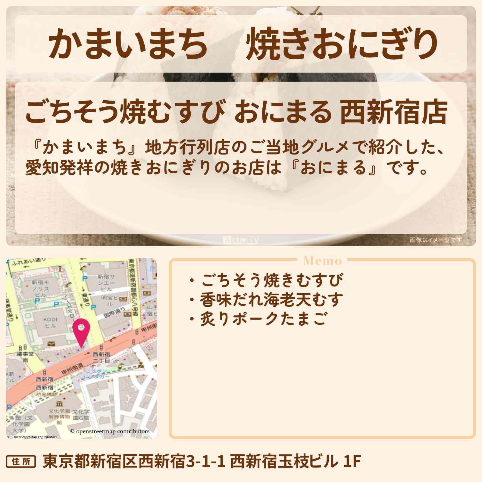 ごちそう焼むすび おにまる 西新宿店 – Retty(レッティ)