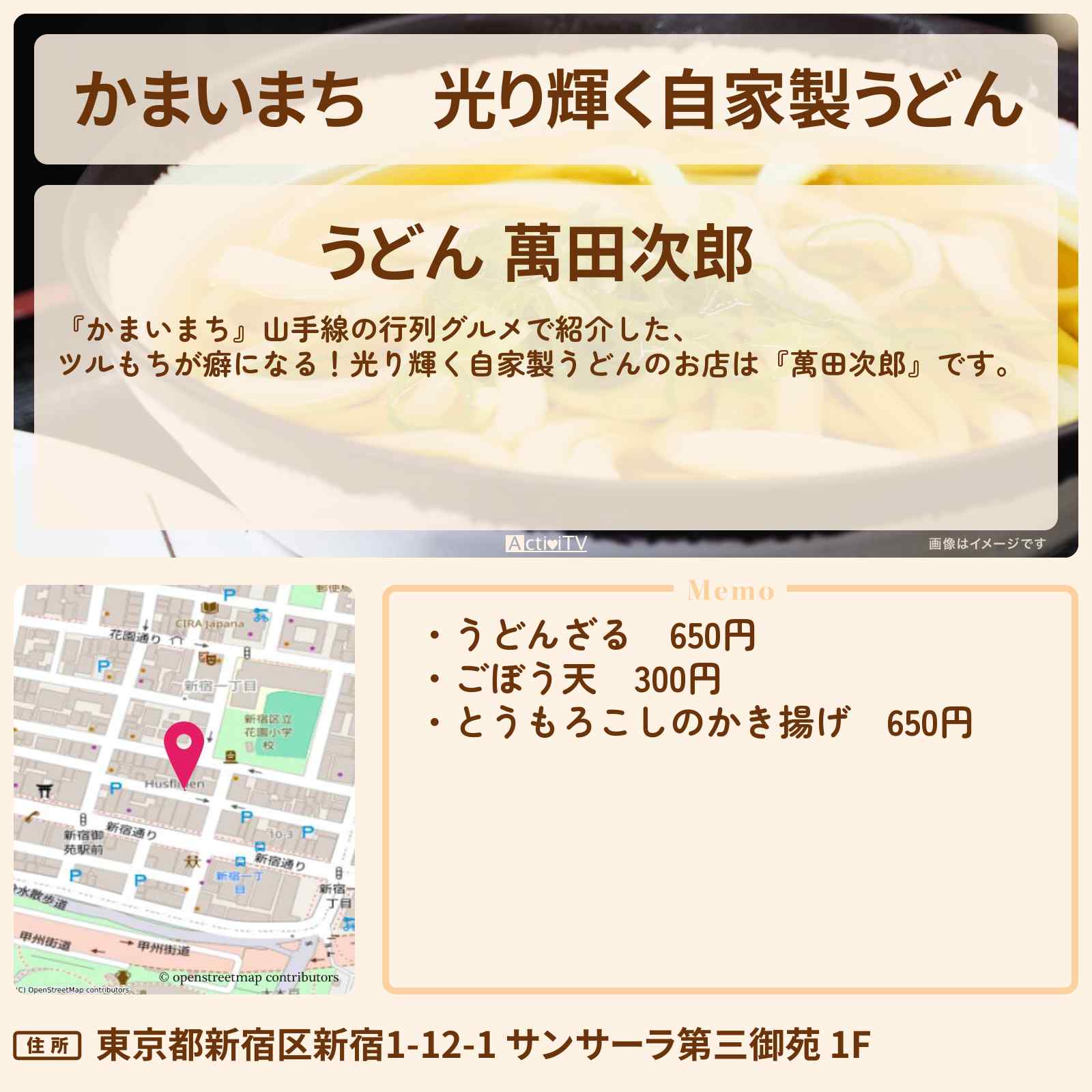 新宿御苑前駅「うどん 萬田次郎」