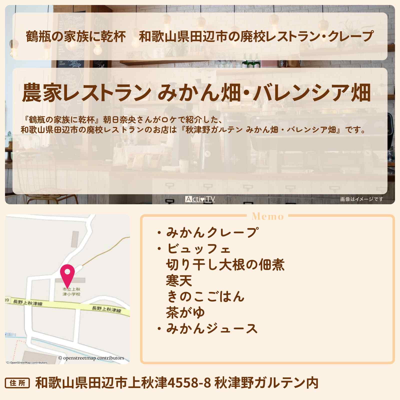 | 住所 | 和歌山県田辺市上秋津4558-8 秋津野ガルテン内 |