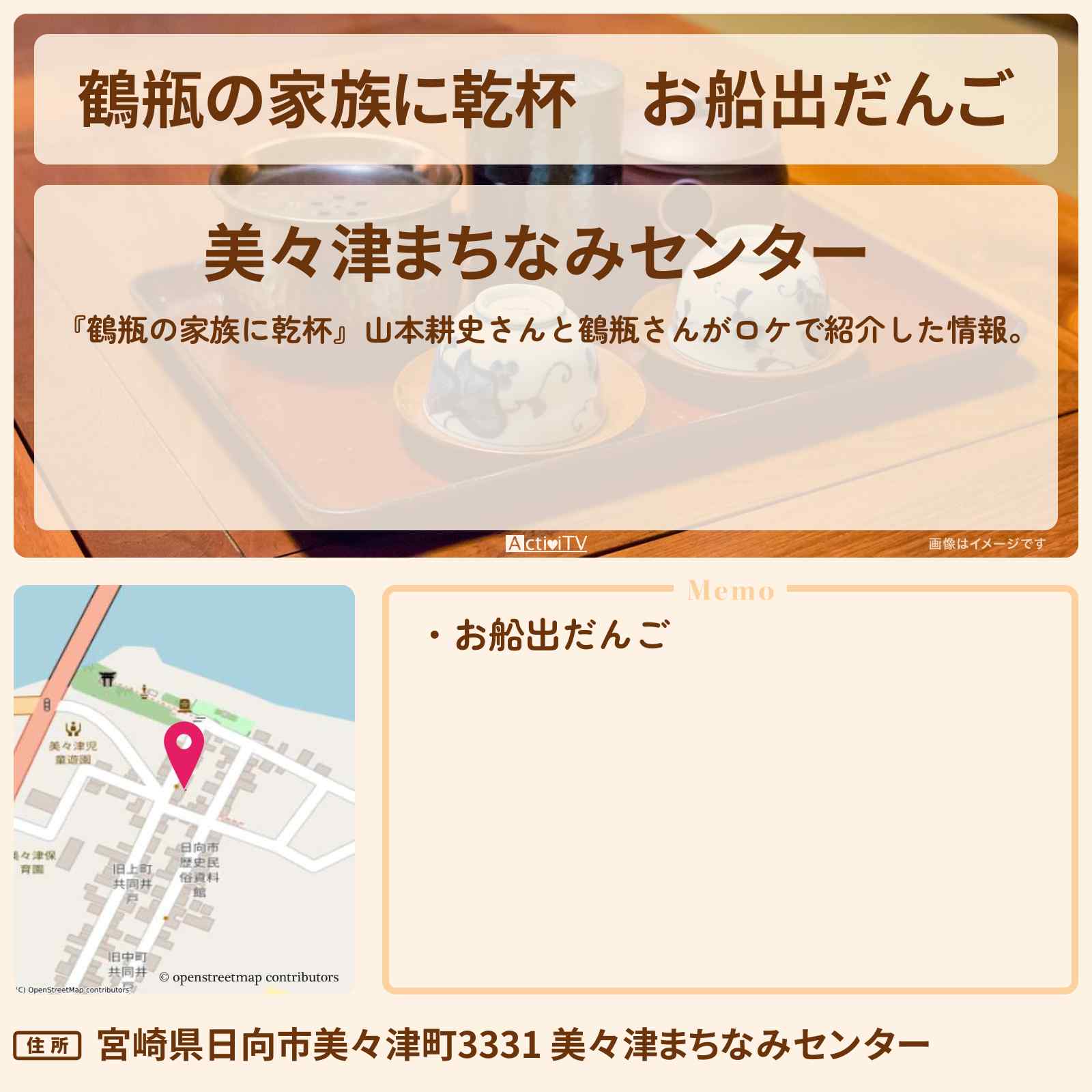 | 住所 | 宮崎県日向市美々津町3331 美々津まちなみセンター |