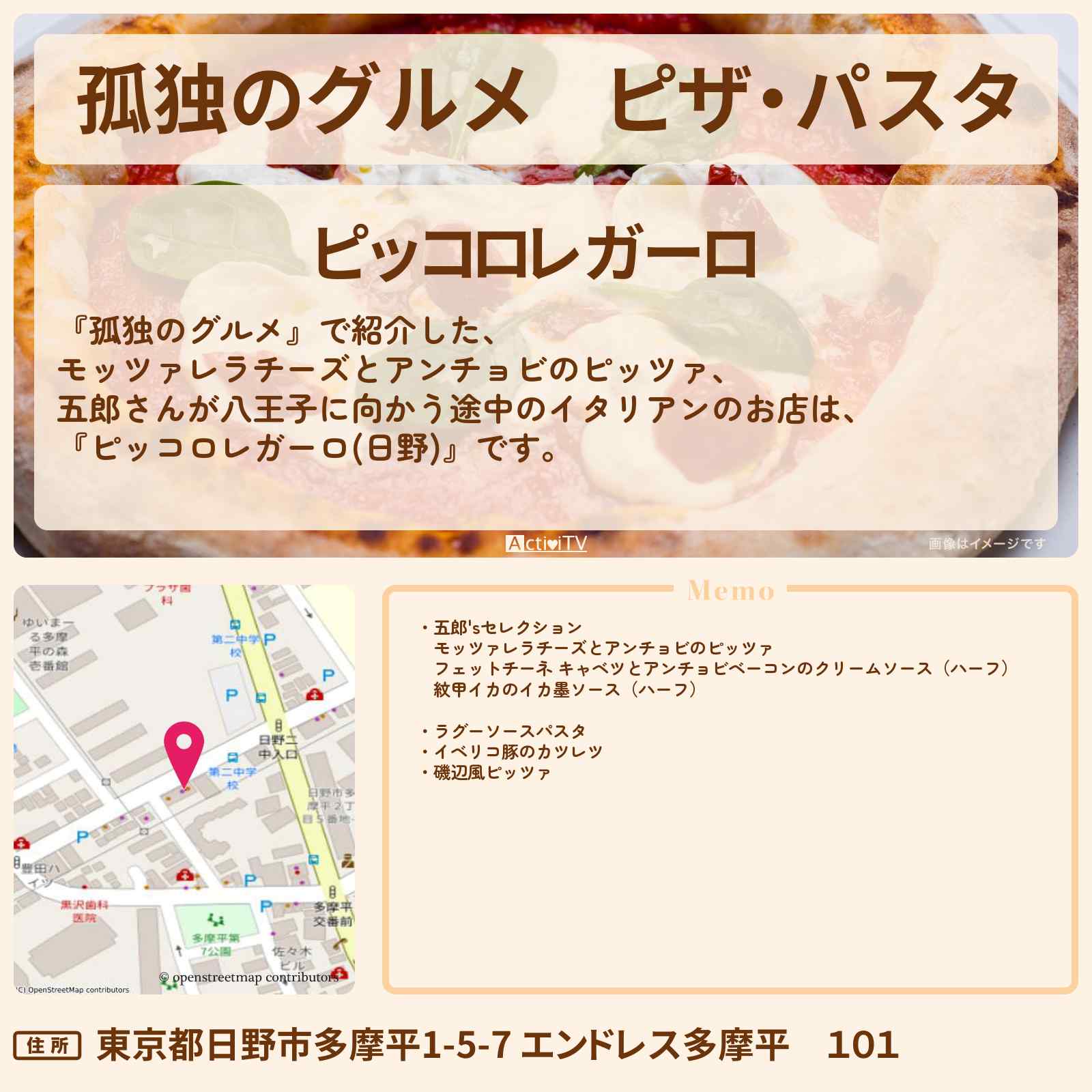 - 五郎さんが八王子に向かう途中に立ち寄ったのイタリアン