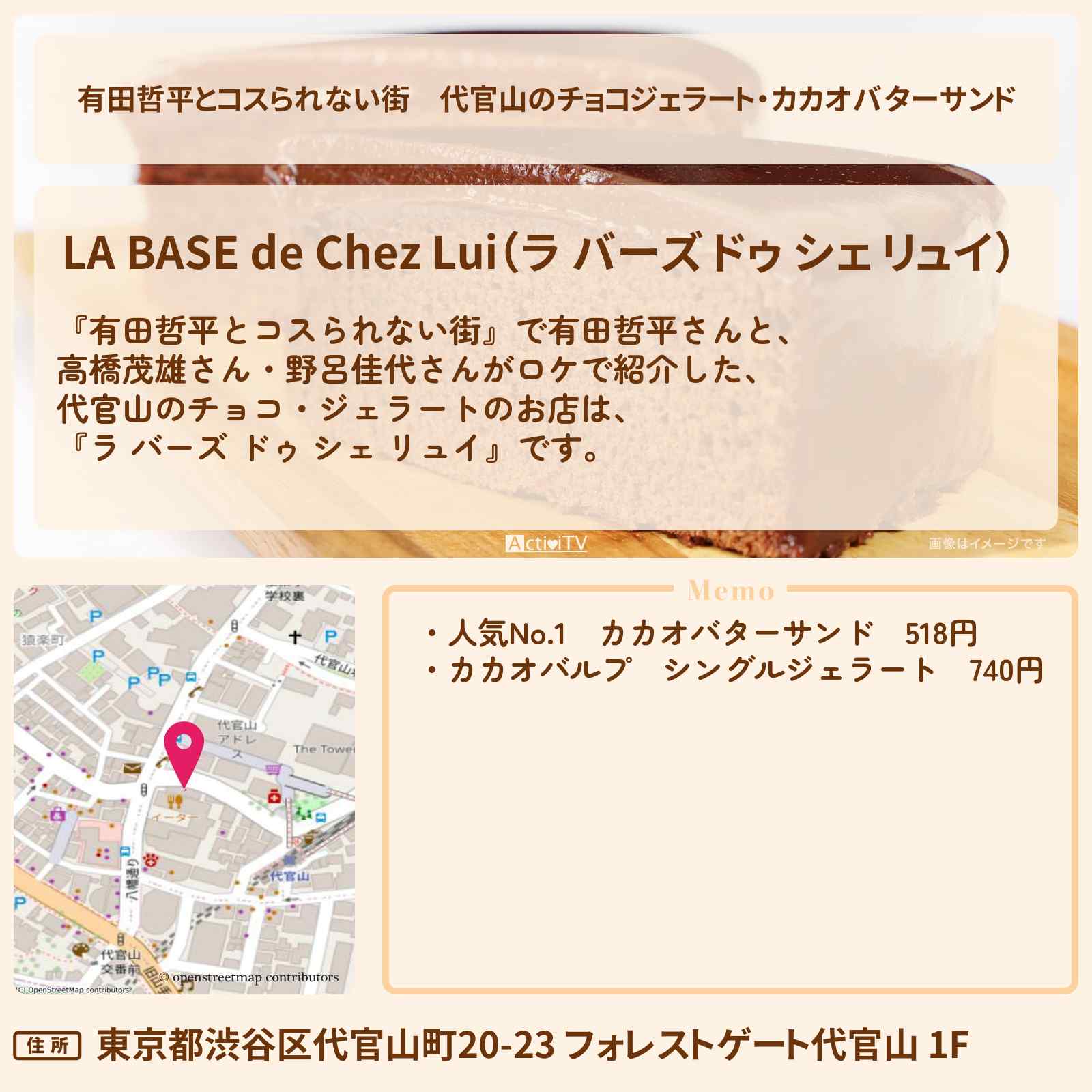 【有田哲平とコスられない街】代官山のチョコジェラート・カカオバターサンド『ラ バーズ ドゥ シェ リュイ』お店の情報