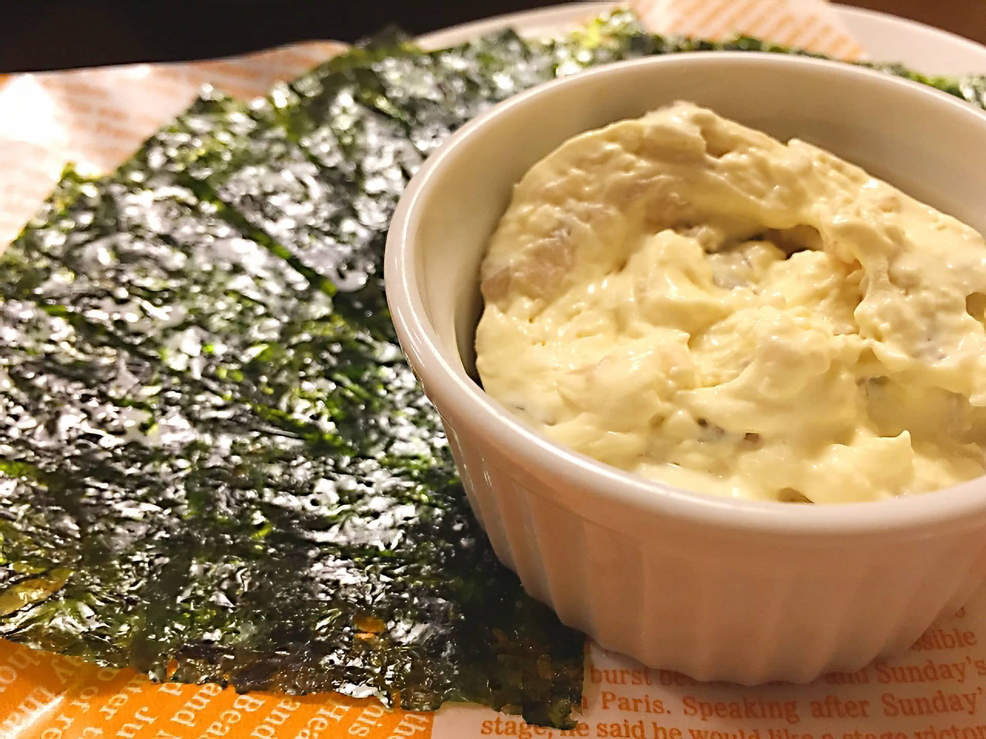 しょうがの甘酢漬け 食べやすい大きさに切る - 焼きのりにクリームチーズをのせて少し伸ばししょうがの甘酢漬け・削り節をお好みでのせてパクっと食べる