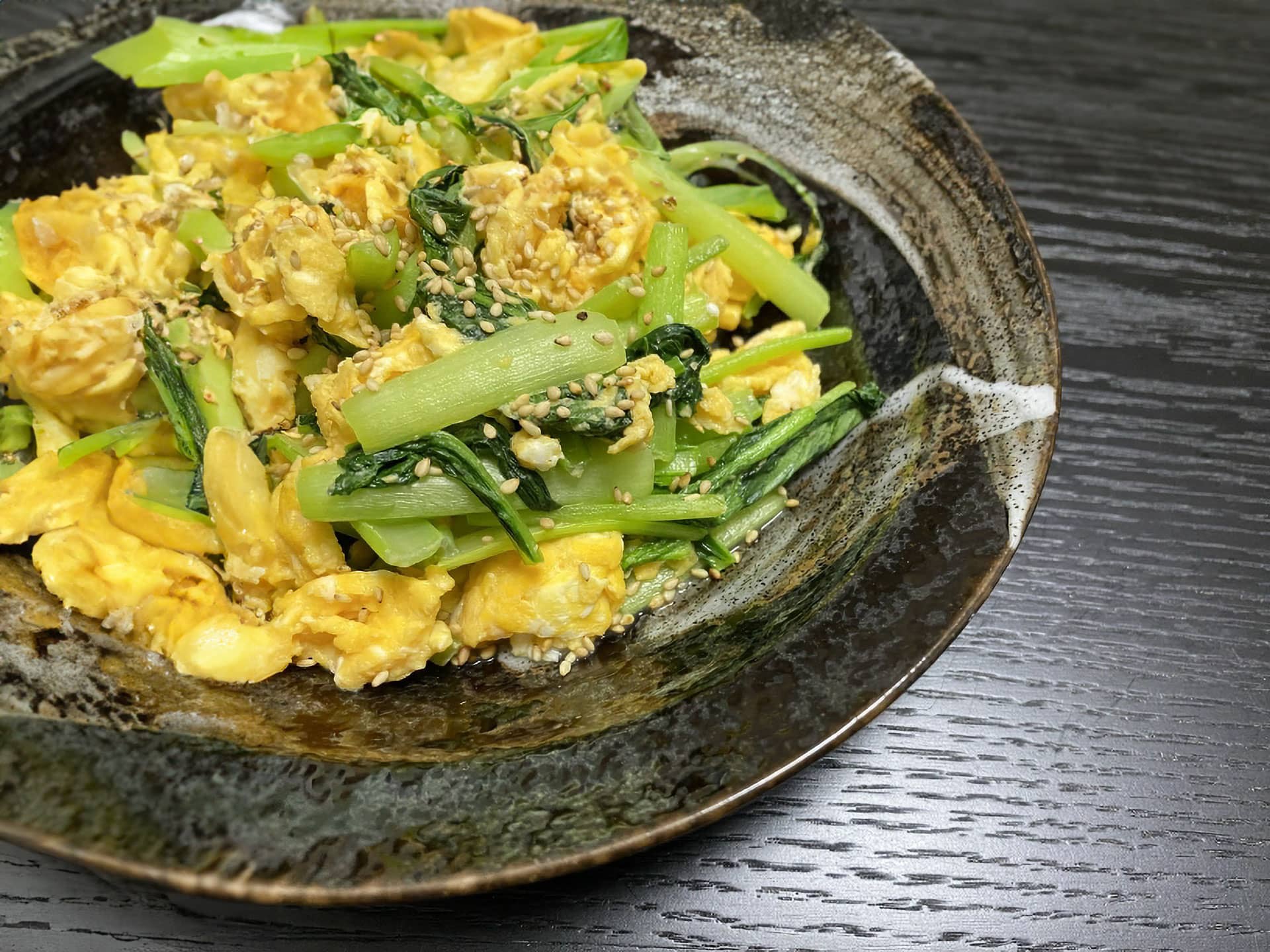 小松菜と卵の塩炒め