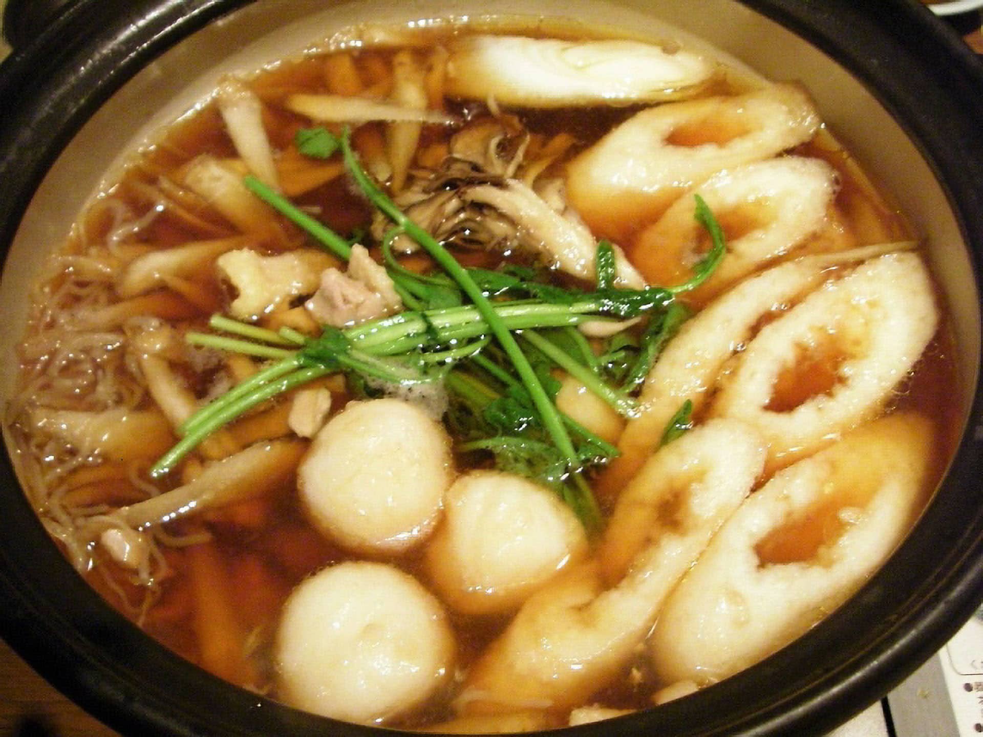 主役の「だまこ」は、温かいご飯と片栗粉をすりこ木で半づきにし、手で丸めたものに、せりやごぼう、まいたけ、ねぎと一緒に食べる郷土鍋は寒い季節に体を温めるのに最適。