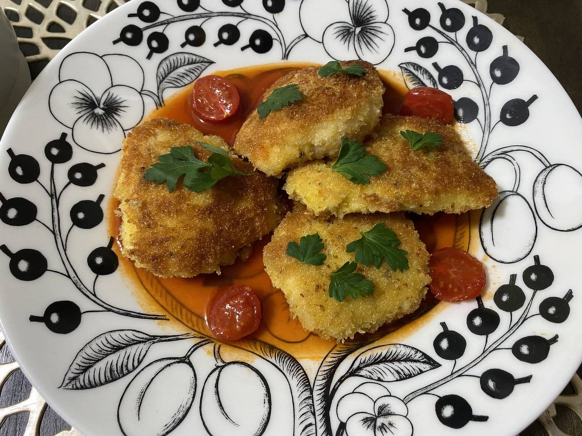 - バターを加えて混ぜ、器に盛ってイタリアンパセリを散らす