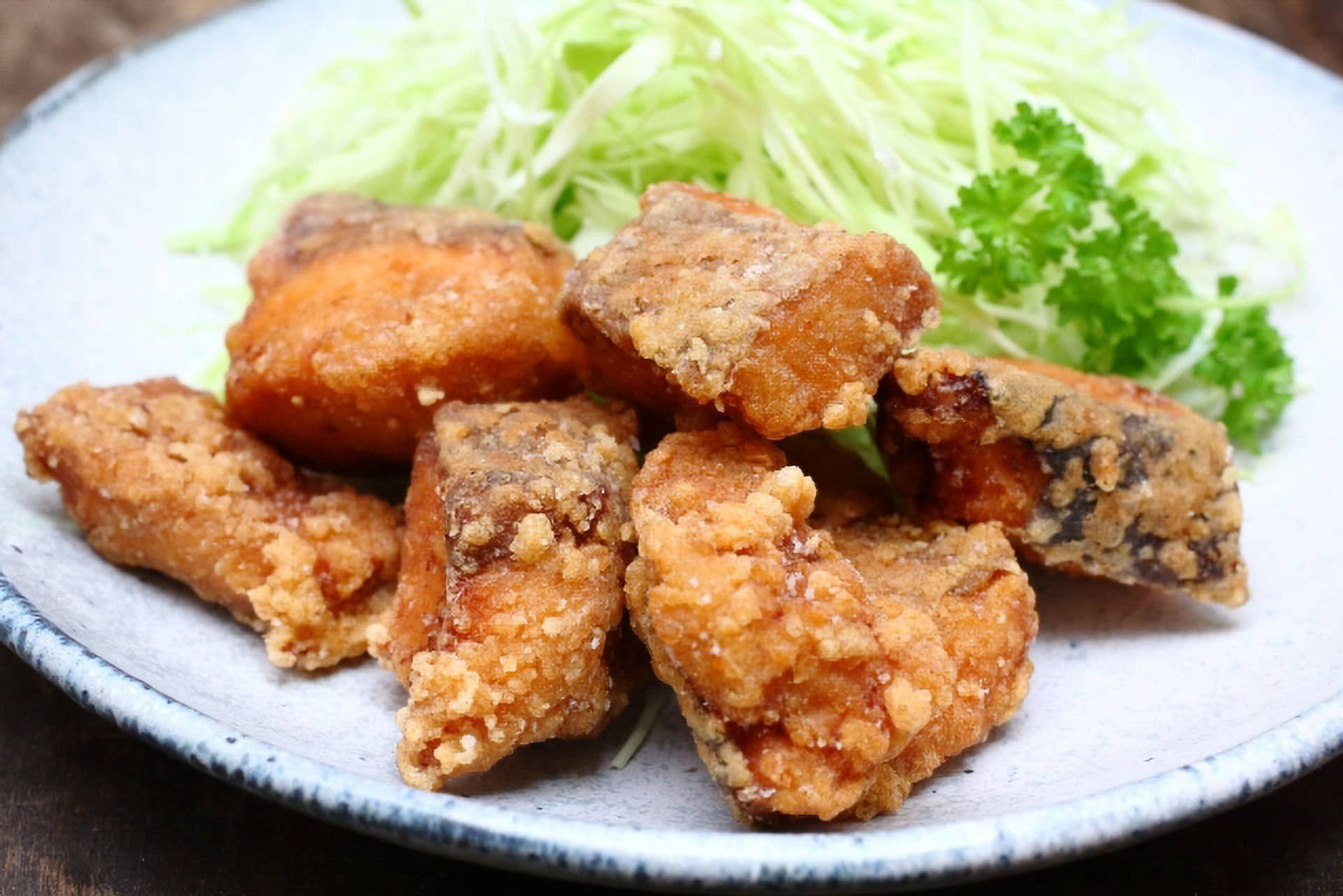 刺身を特製の調味料でマリネし、片栗粉をまぶしてカリッと焼き上げることで、外はサクサク、中はふっくらとした食感を楽しめます。レモンの酸味と花椒のピリッとした辛味が加わることで、味わいに深みが増し、食欲をそそります。