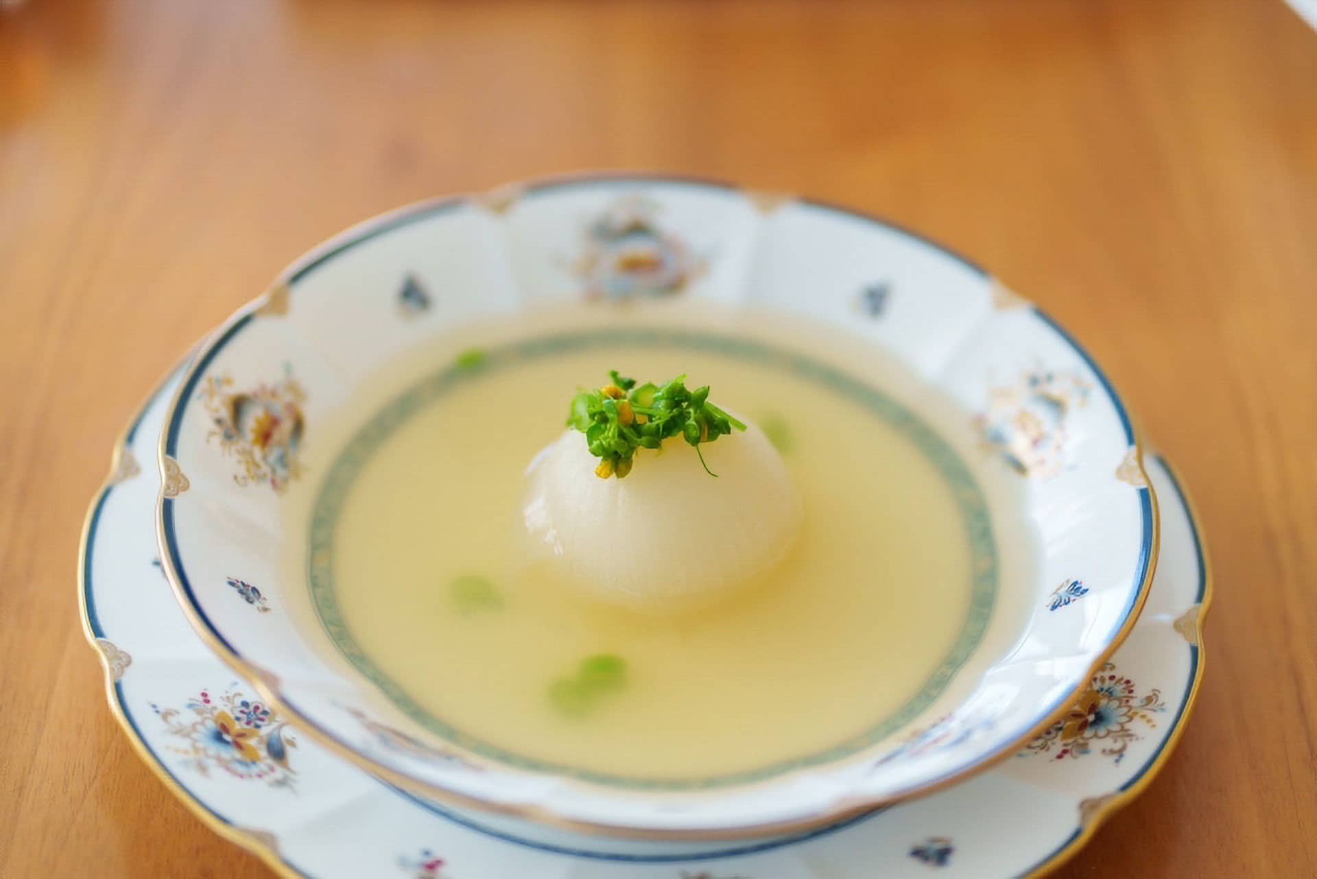 新鮮な新たまねぎの甘みとかにの旨味が溶け込んだ、春の訪れを感じさせる一品です。じっくり煮ることで新たまが驚くほど甘く、とろける柔らかさに。シンプルながらも、深い味わいのスープが心を温めてくれます。