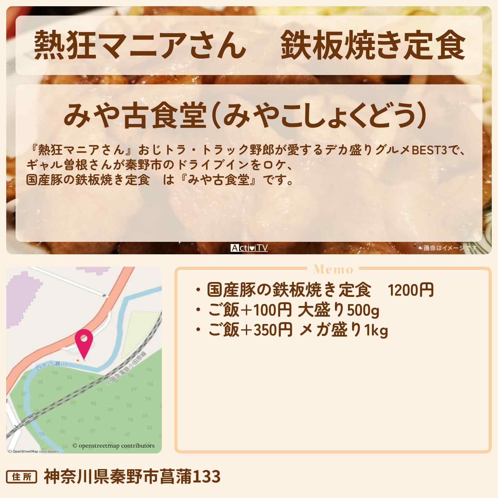 国産豚の鉄板焼き定食 渋沢駅「みや古食堂(みやこしょくどう)」