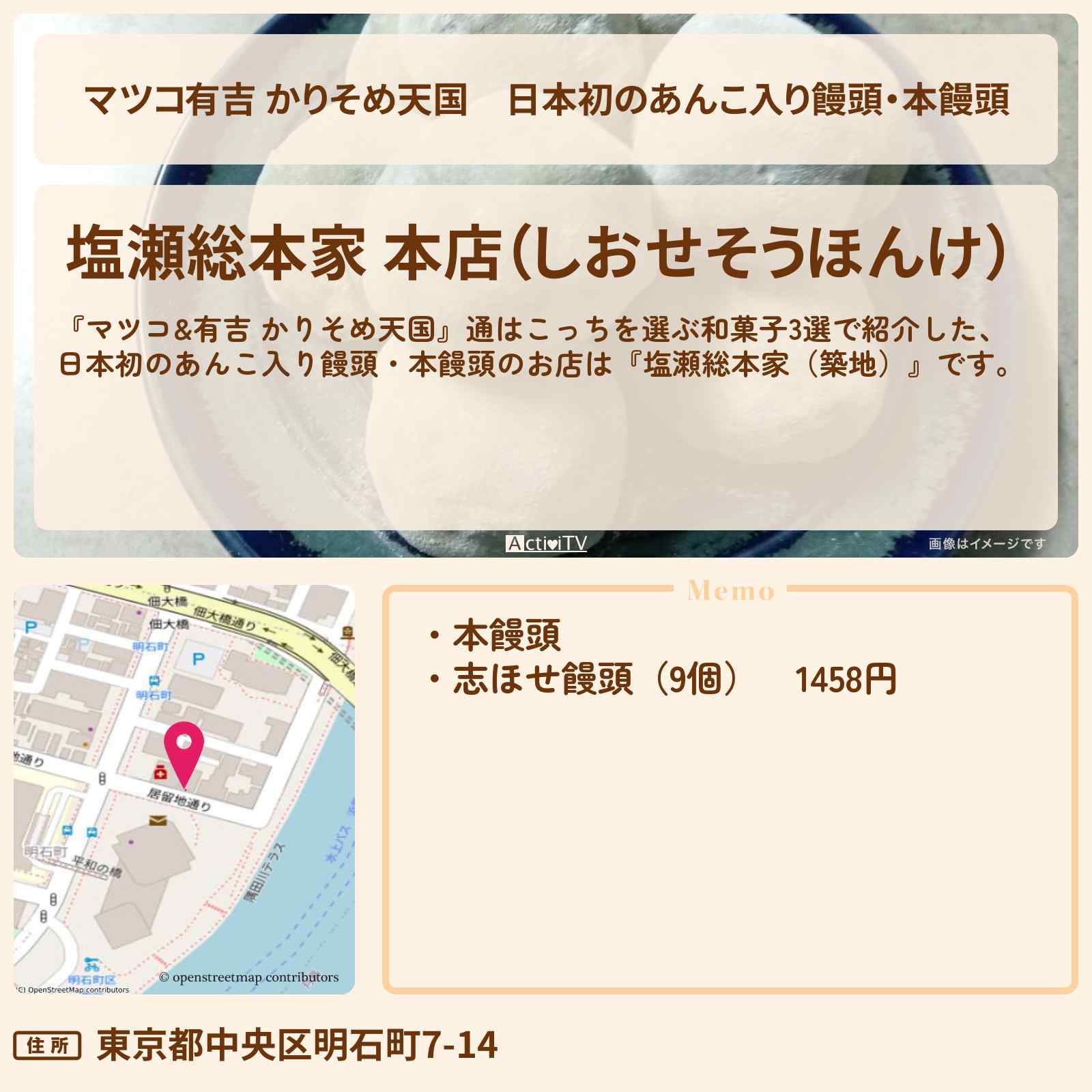 日本初のあんこ入り饅頭・本饅頭 築地駅「塩瀬総本家 本店(しおせそうほんけ)」