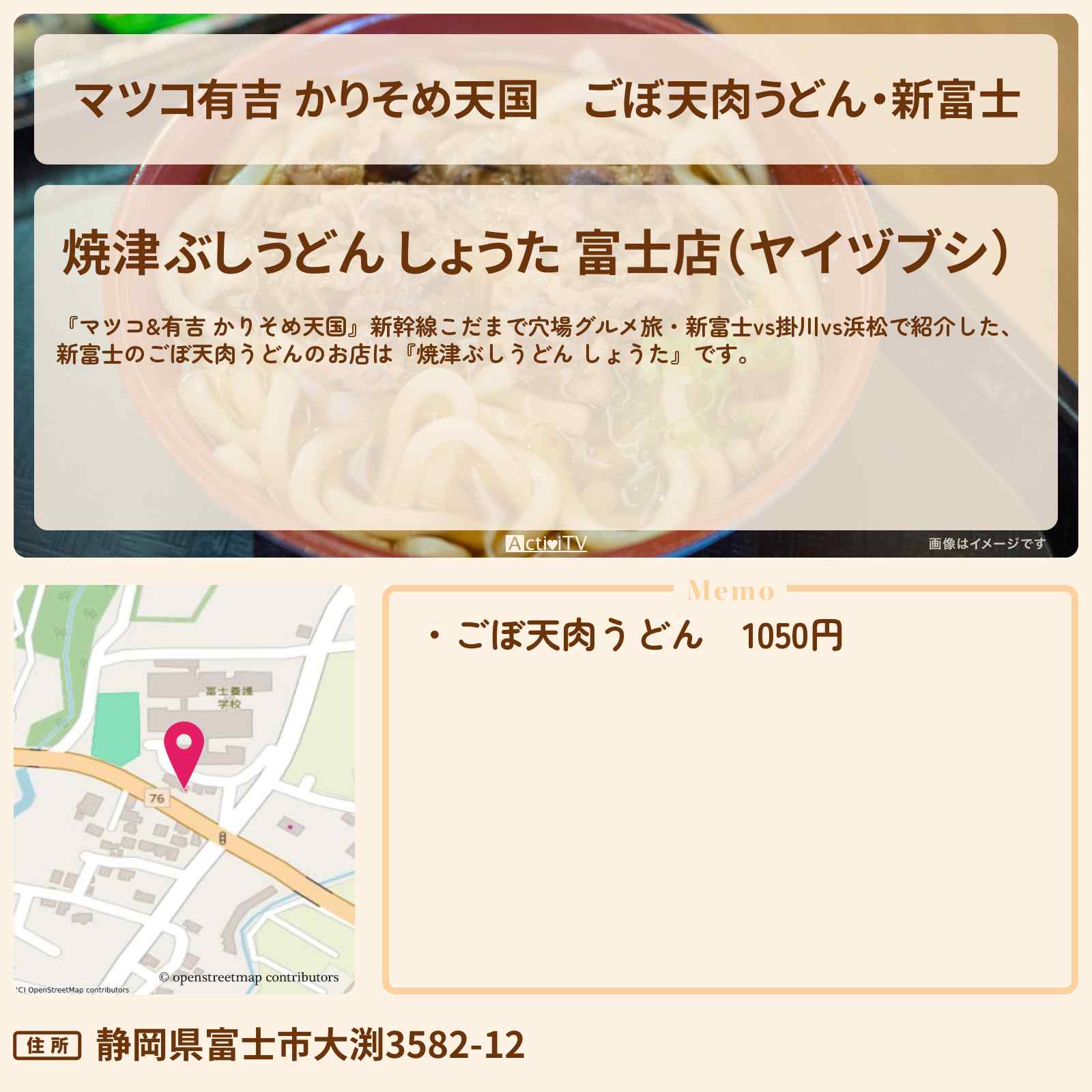 | 住所 | 静岡県富士市大渕3582-12 |