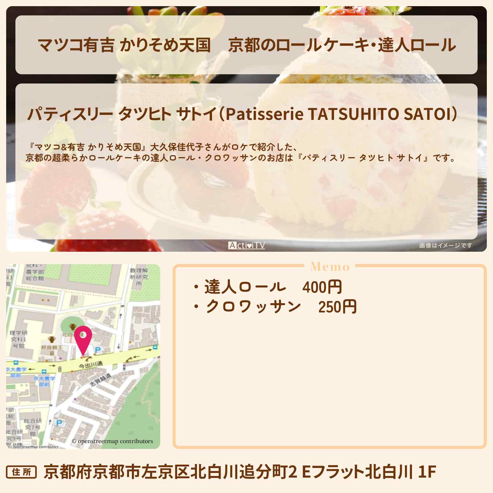 元田中駅「パティスリー タツヒト サトイ(Patisserie TATSUHITO SATOI)」