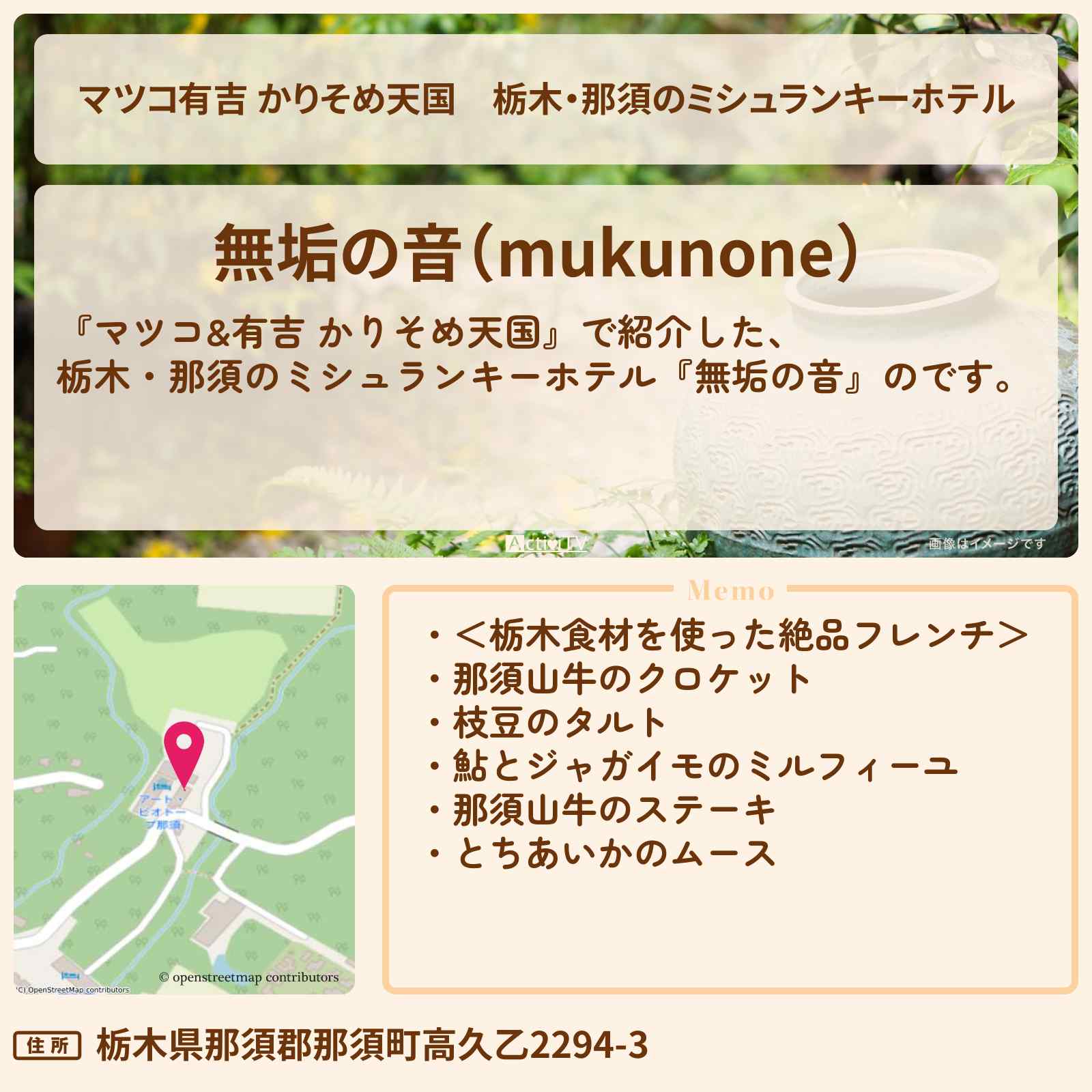 栃木のミシュランキーホテル「無垢の音(mukunone)」