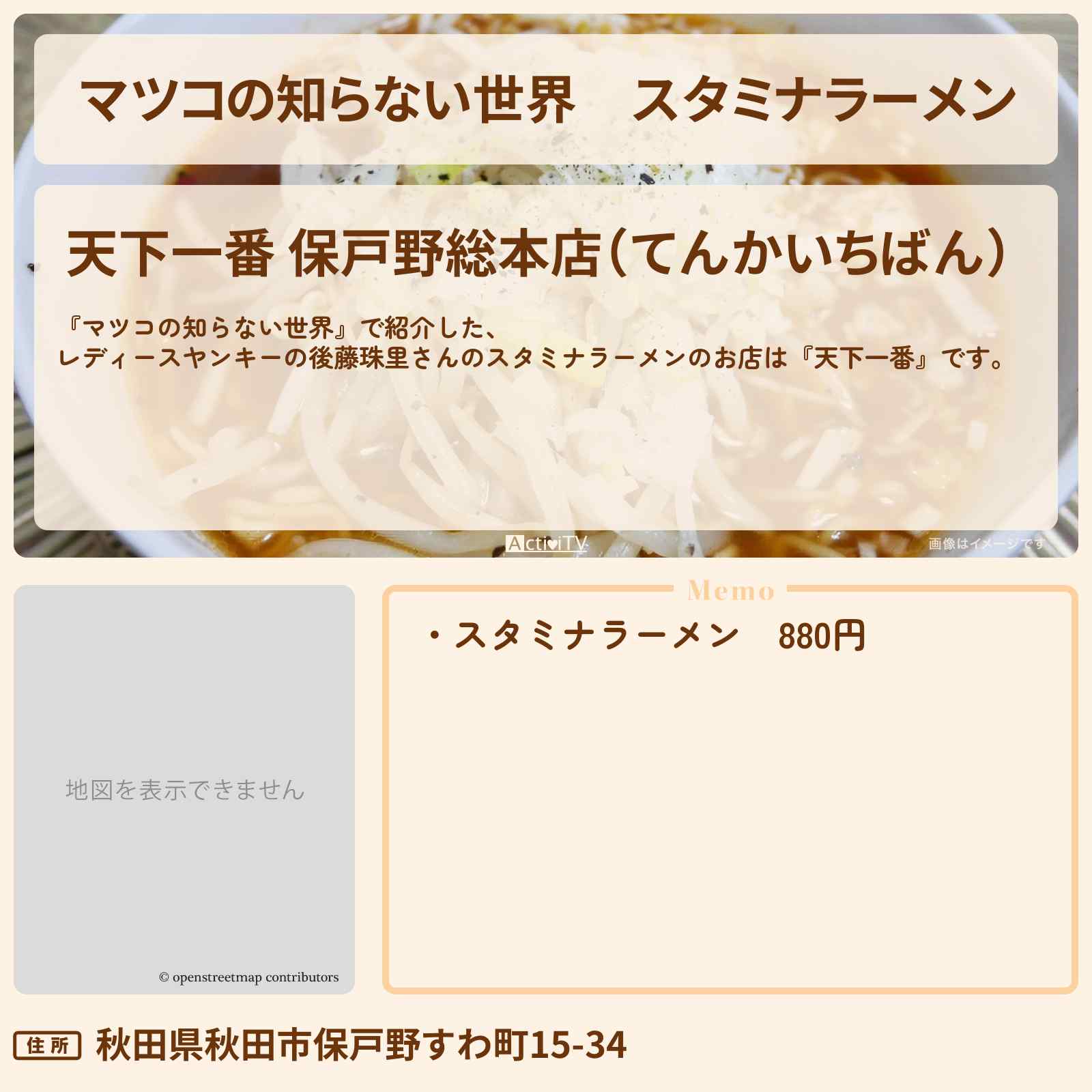 後藤珠里さん 秋田「天下一番 保戸野総本店(てんかいちばん)」