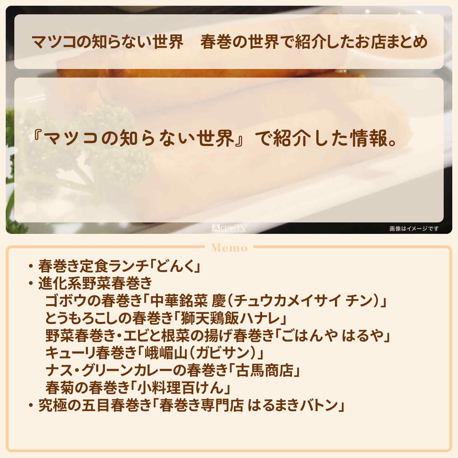 今回の春巻の世界では1000種類の春巻を食べ歩く構成作家の久松知博さんが、根菜・とうもろこし・きゅうりなど日本で独自進化した春巻きの魅力を紹介しました。