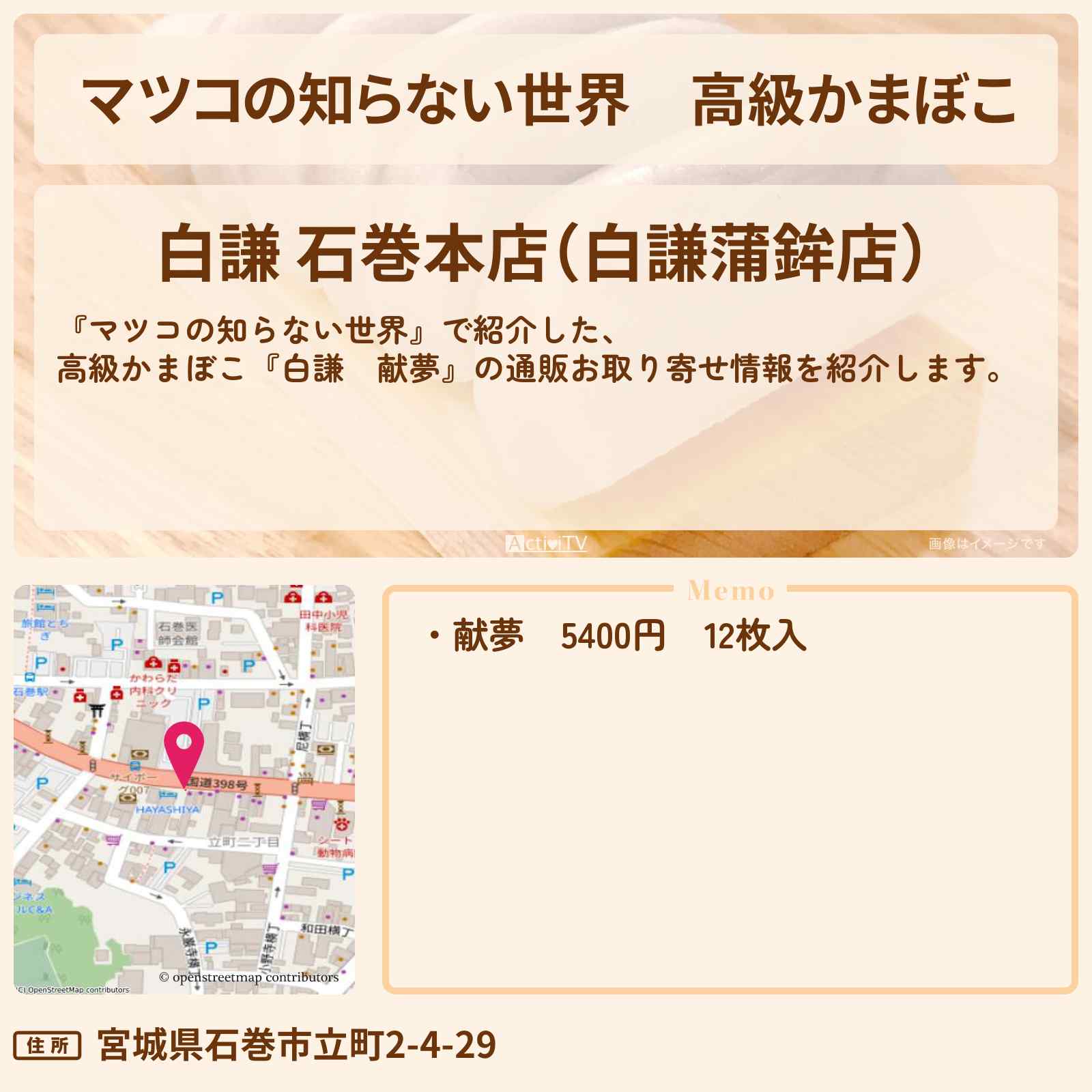 国宝級!高級かまぼこ「白謙 石巻本店(白謙蒲鉾店)」