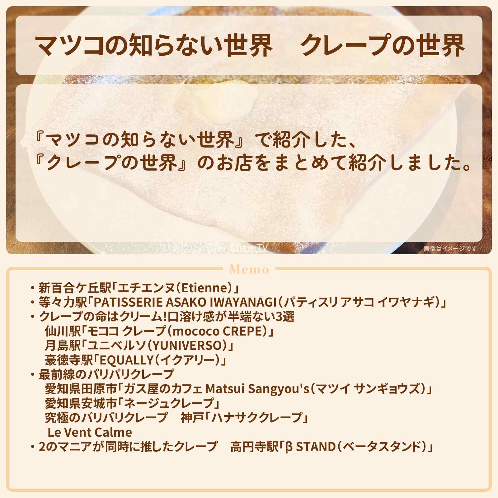 ゆたかさんとぴーちゃんさんが見た目が美しいパティスリーのクレープ、パリパリ生地のクレープ、ふわふわのクリームにこだわったクレープなどを紹介しました。