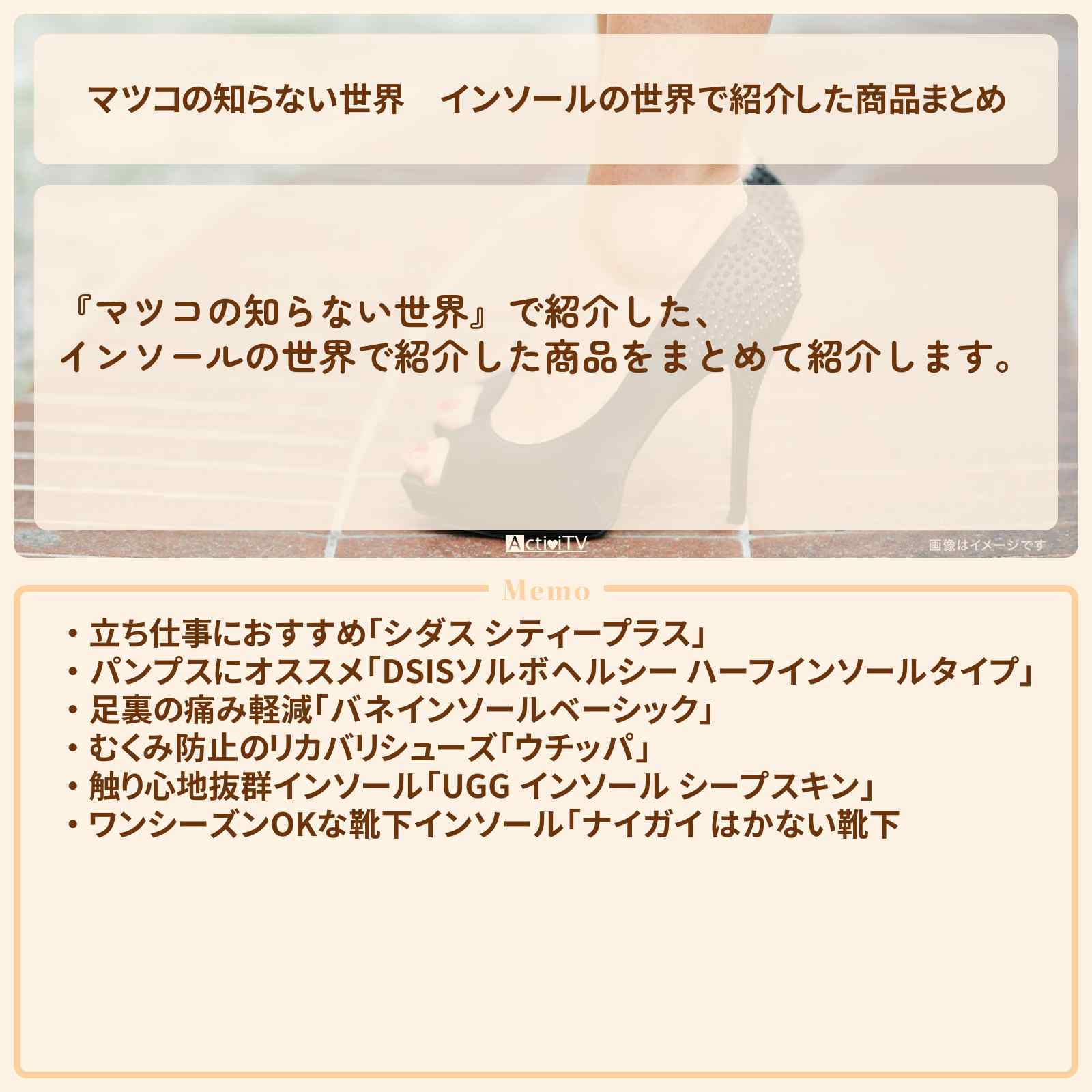 放送の【マツコの知らない世界】で紹介した、インソールの世界で紹介した商品をまとめて紹介します。