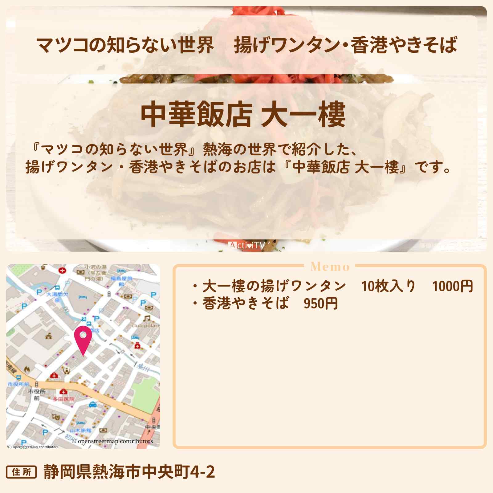 熱海で人気のお土産”揚げワンタン”をはじめ、ラーメンやチャーハンなどランチメニューから本格中華会席料理まで豊富なメニューをご用意。熱海で中華(ランチ)食べるなら 大一楼へ…