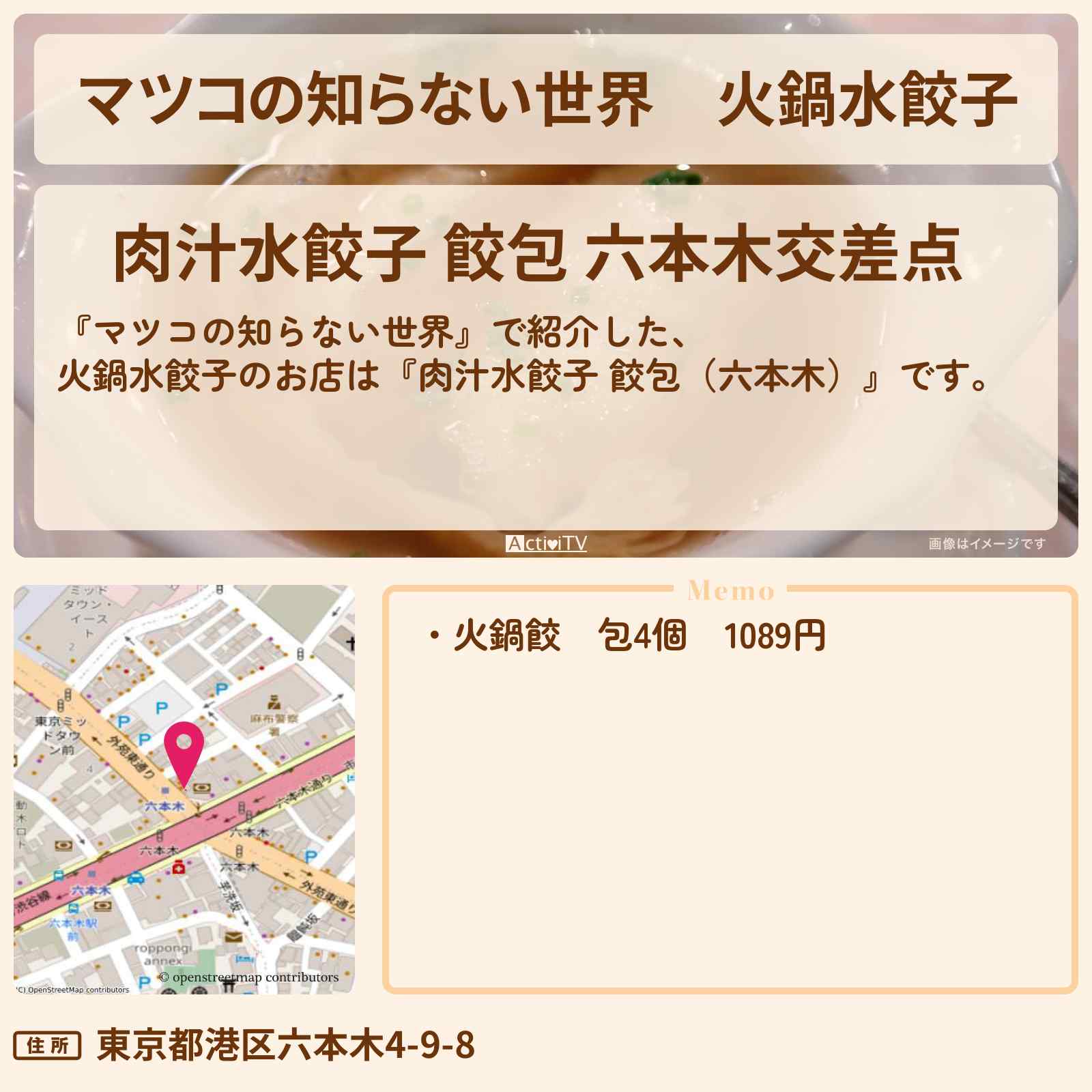 火鍋水餃子 六本木駅「肉汁水餃子 餃包 六本木交差点」