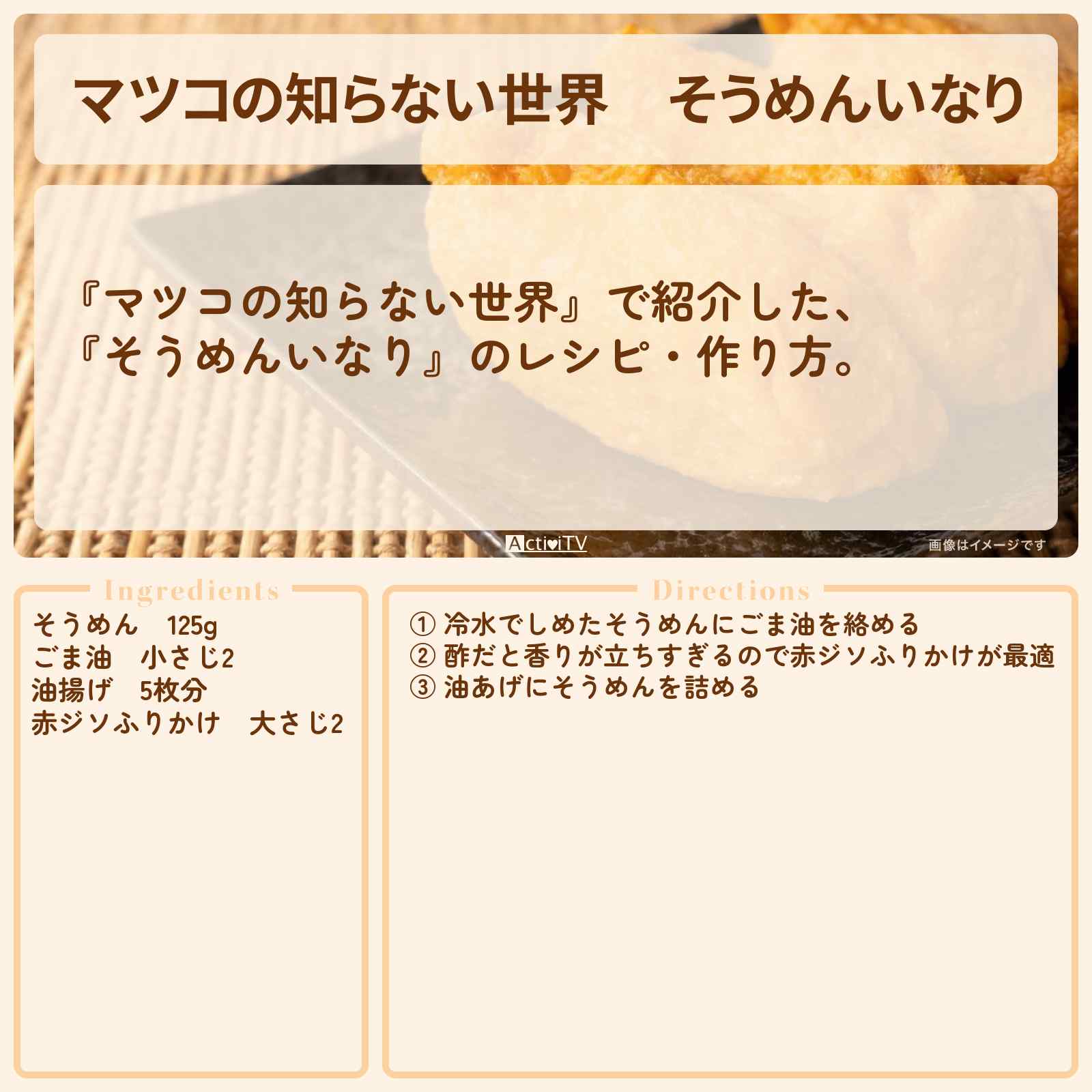 放送の【マツコの知らない世界】で紹介した、『そうめんいなり』のレシピ・作り方。
