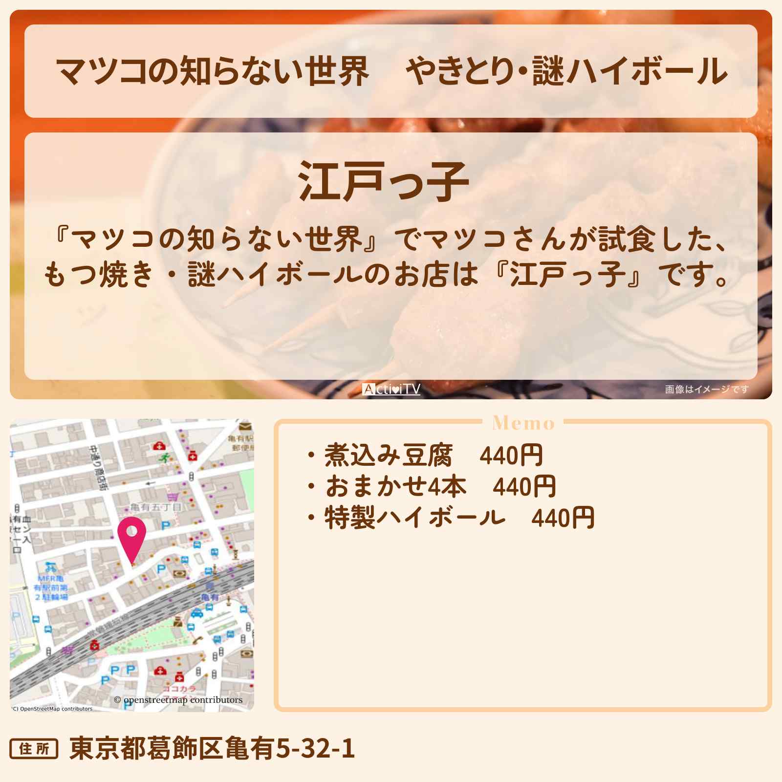 | 住所 | 東京都葛飾区亀有5-32-1 |