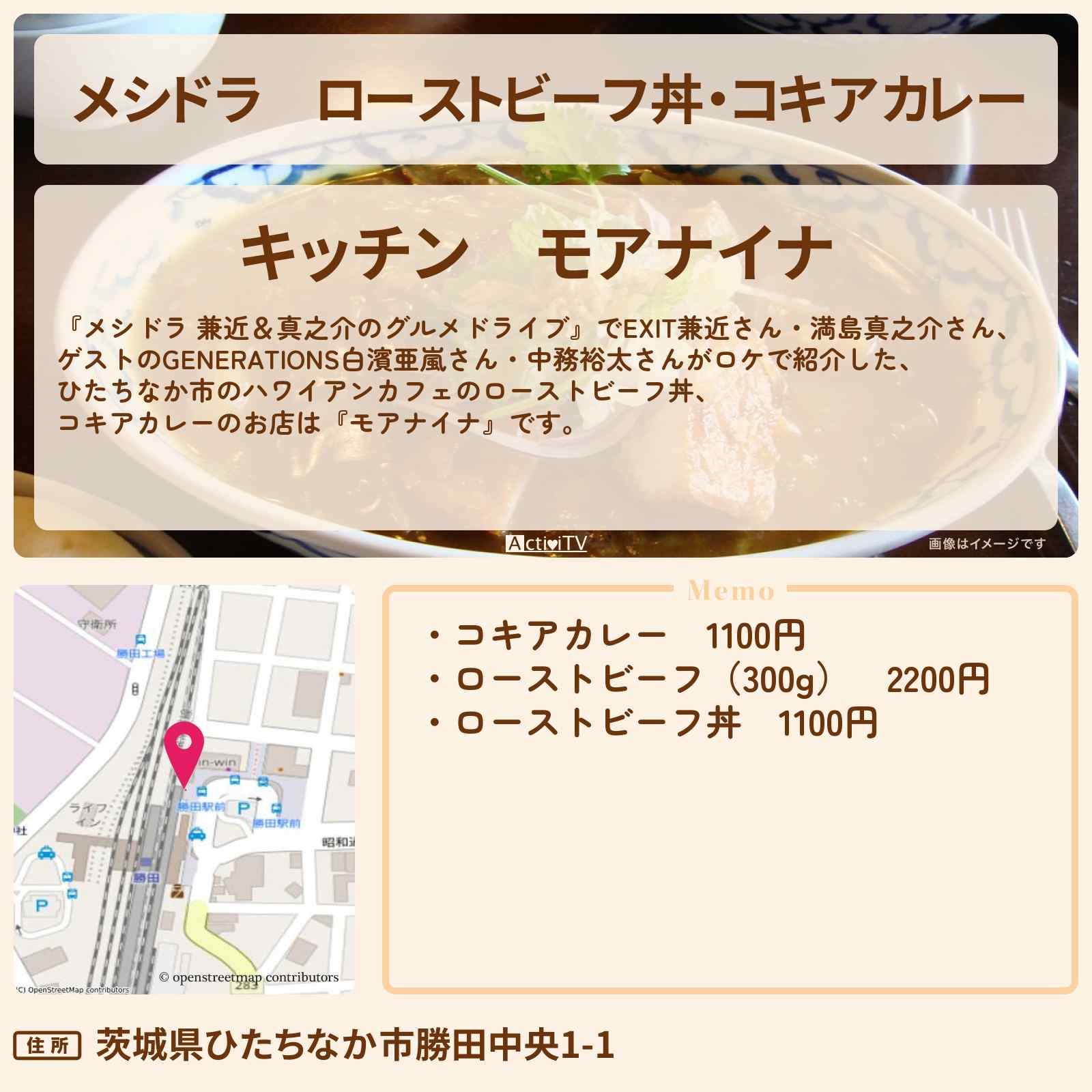ローストビーフ丼・コキアカレー「キッチン モアナイナ」