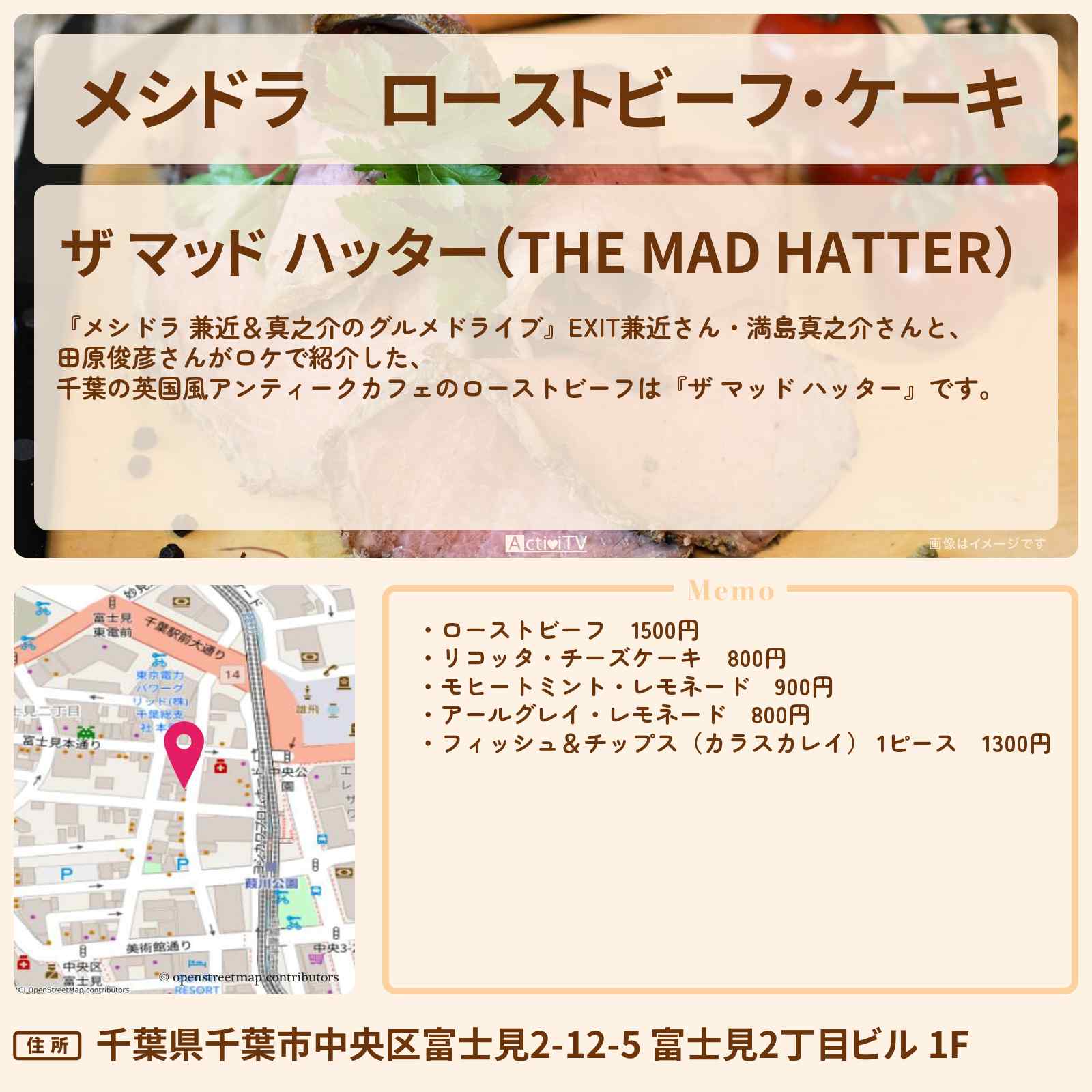 | 住所 | 千葉県千葉市中央区富士見2-12-5 富士見2丁目ビル 1F |