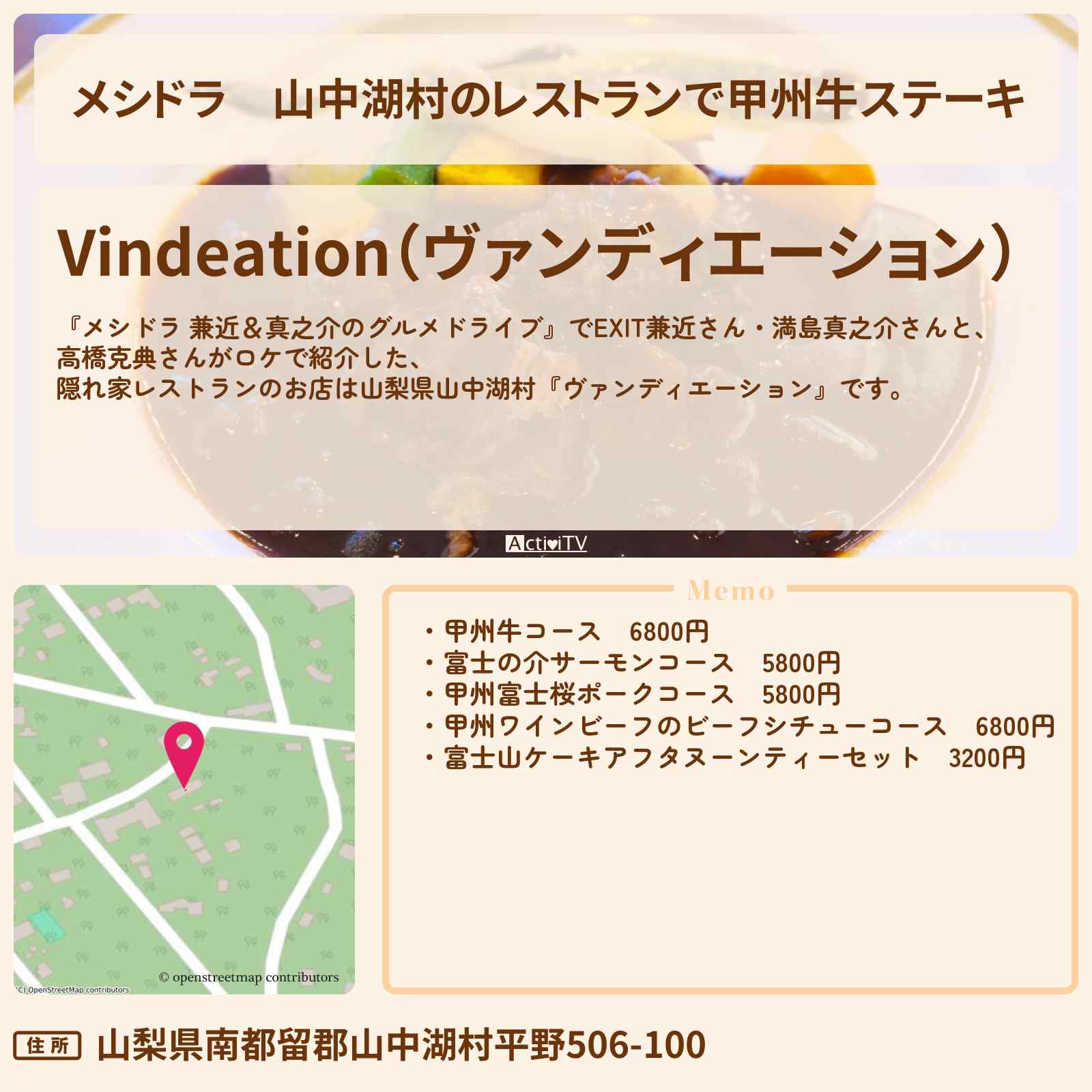 | 住所 | 山梨県南都留郡山中湖村平野506-100 |
