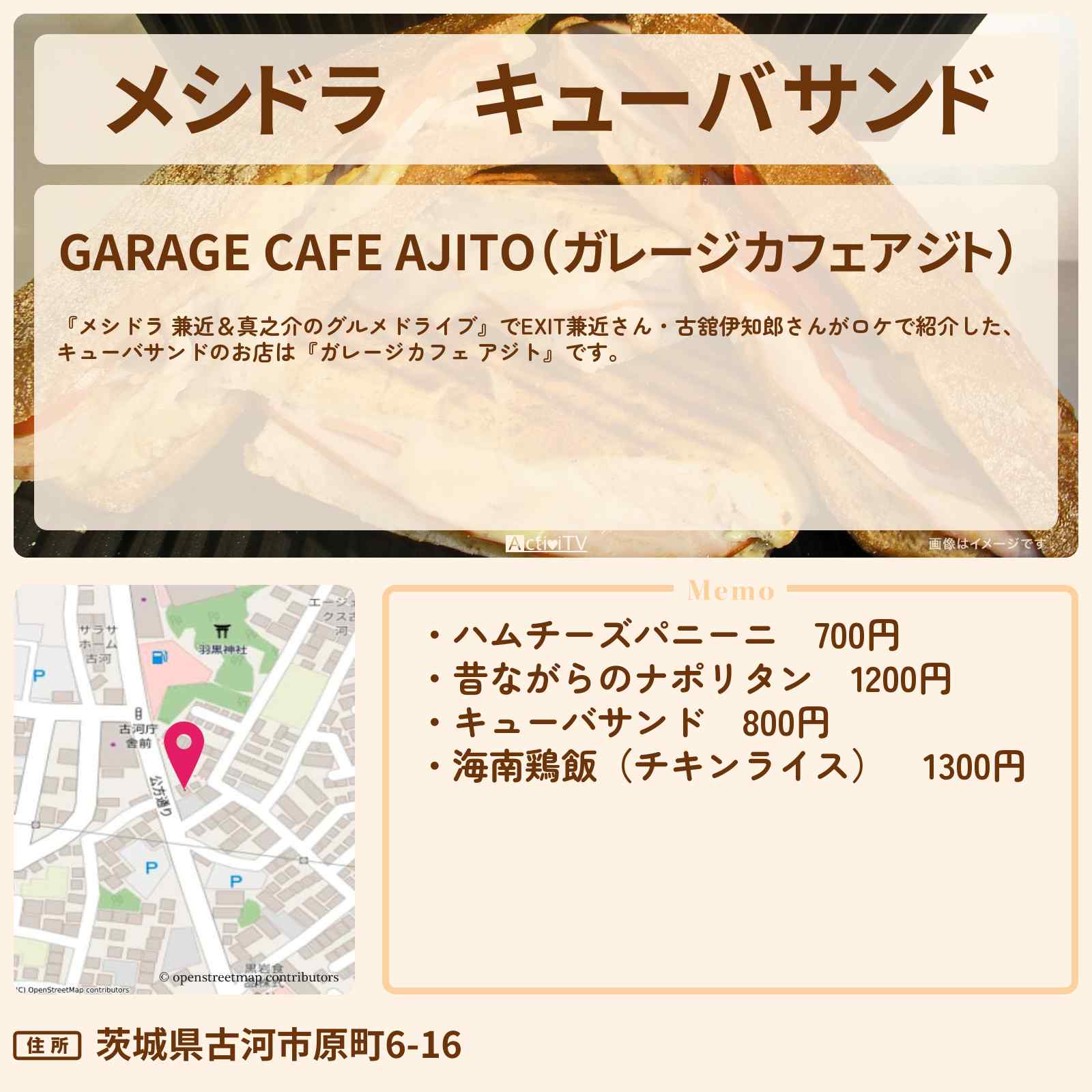 キューバサンド「GARAGE CAFE AJITO(ガレージカフェアジト)」