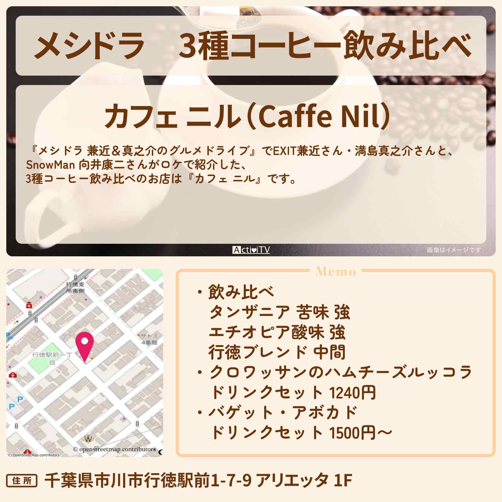 3種類のコーヒーを飲み比べ「カフェ ニル(Caffe Nil)」