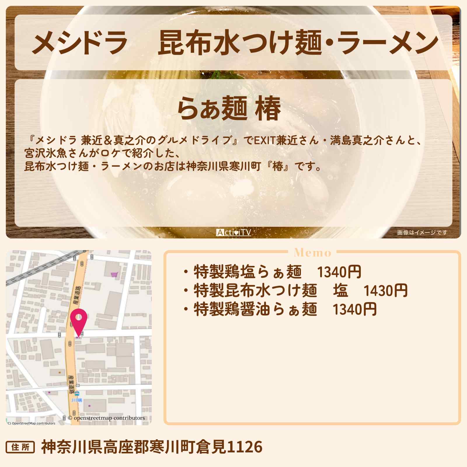 昆布水つけ麺・ラーメン「らぁ麺 椿」