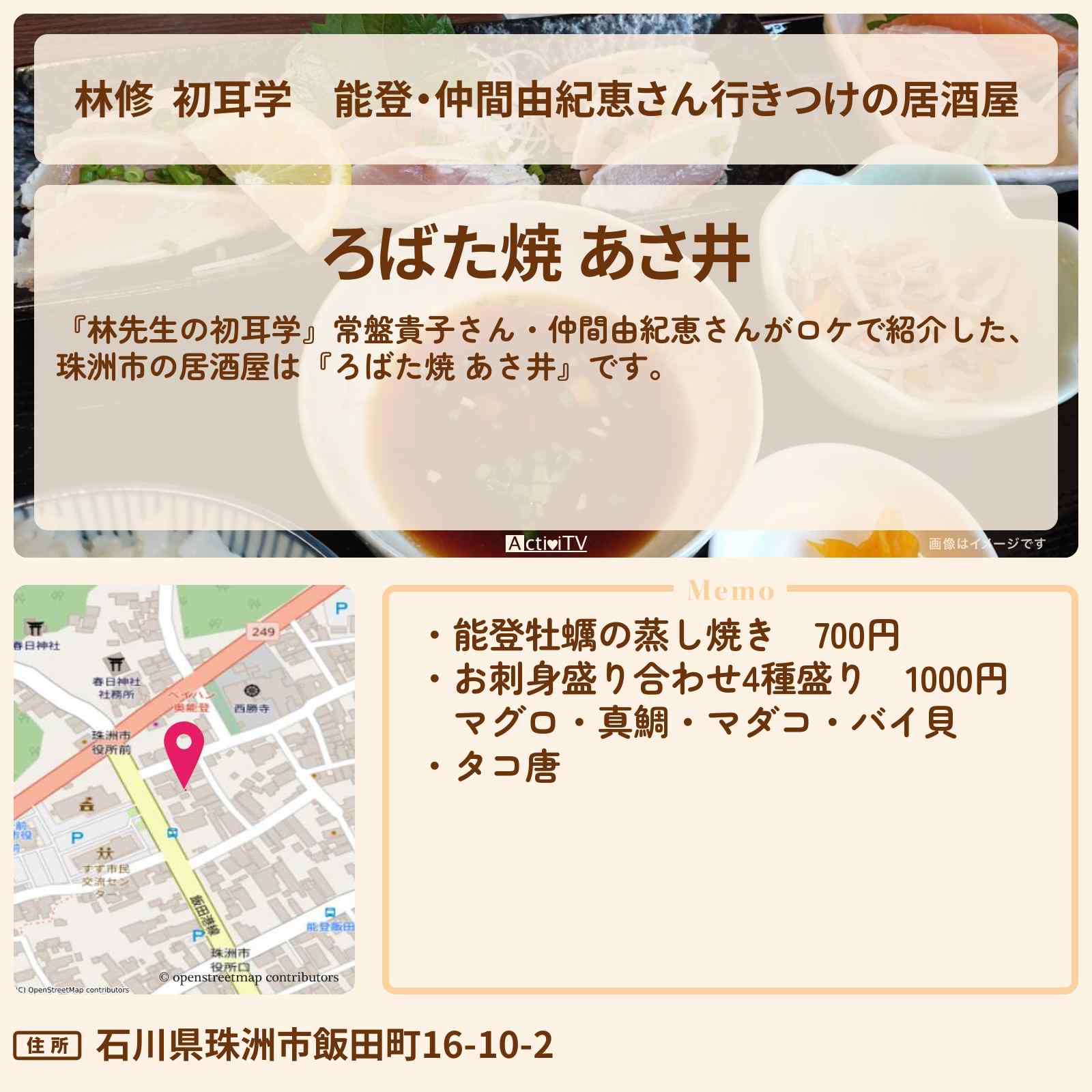 珠洲市の居酒屋「ろばた焼 あさ井」