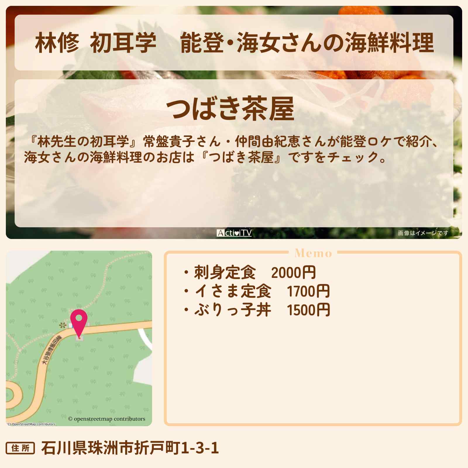 こちらは『つばき茶屋(能登/定食)』のお店ページです。実名でのオススメが2件集まっています。Rettyで食が好きなグルメな人たちからお店を探そう!