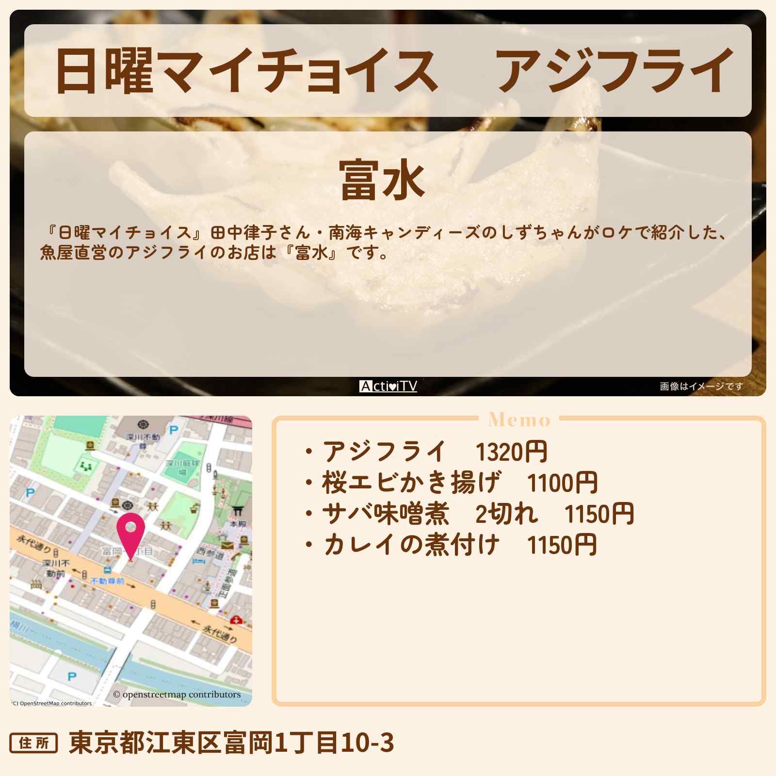 | 住所 | 東京都江東区富岡1丁目10-3 |
