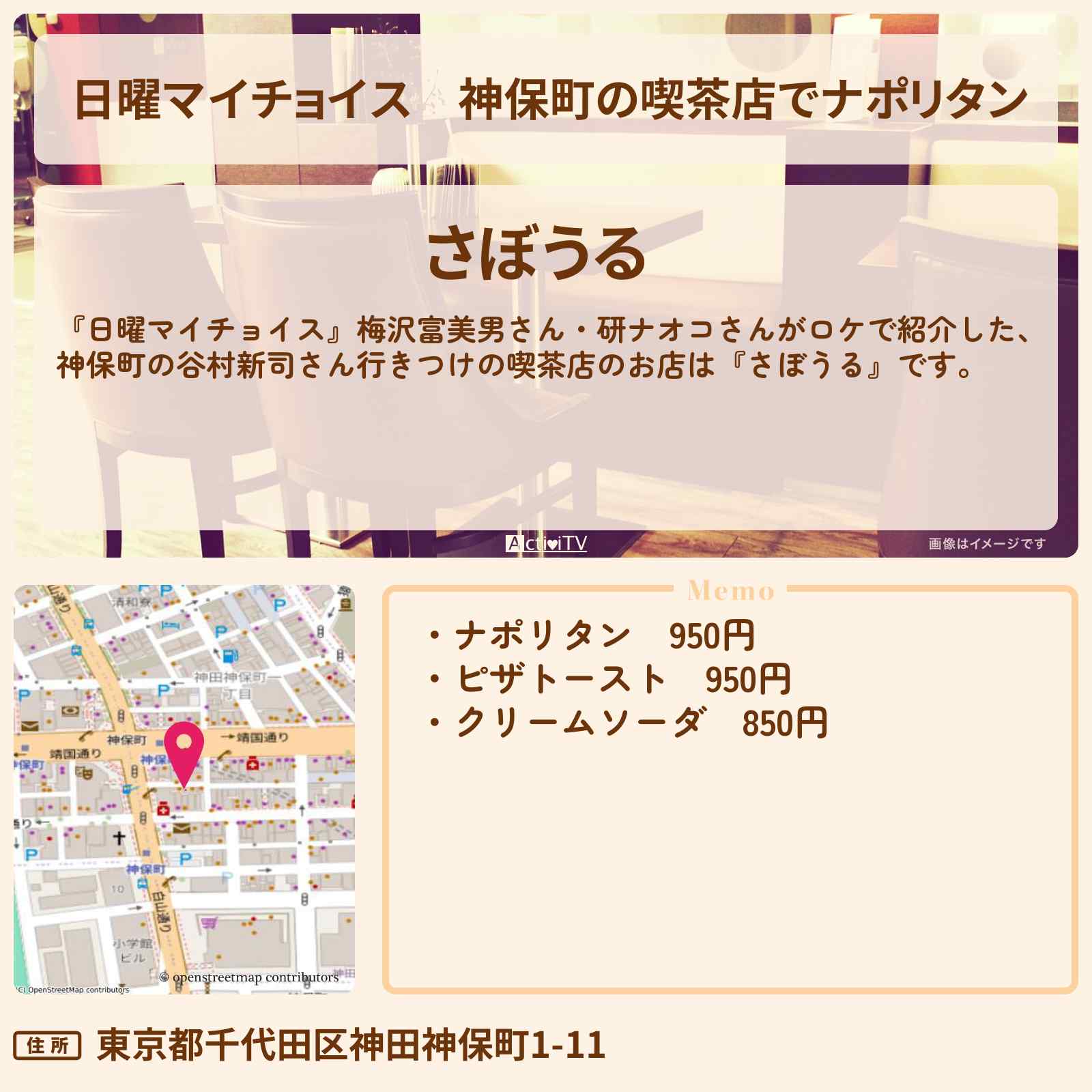 | 住所 | 東京都千代田区神田神保町1-11 |