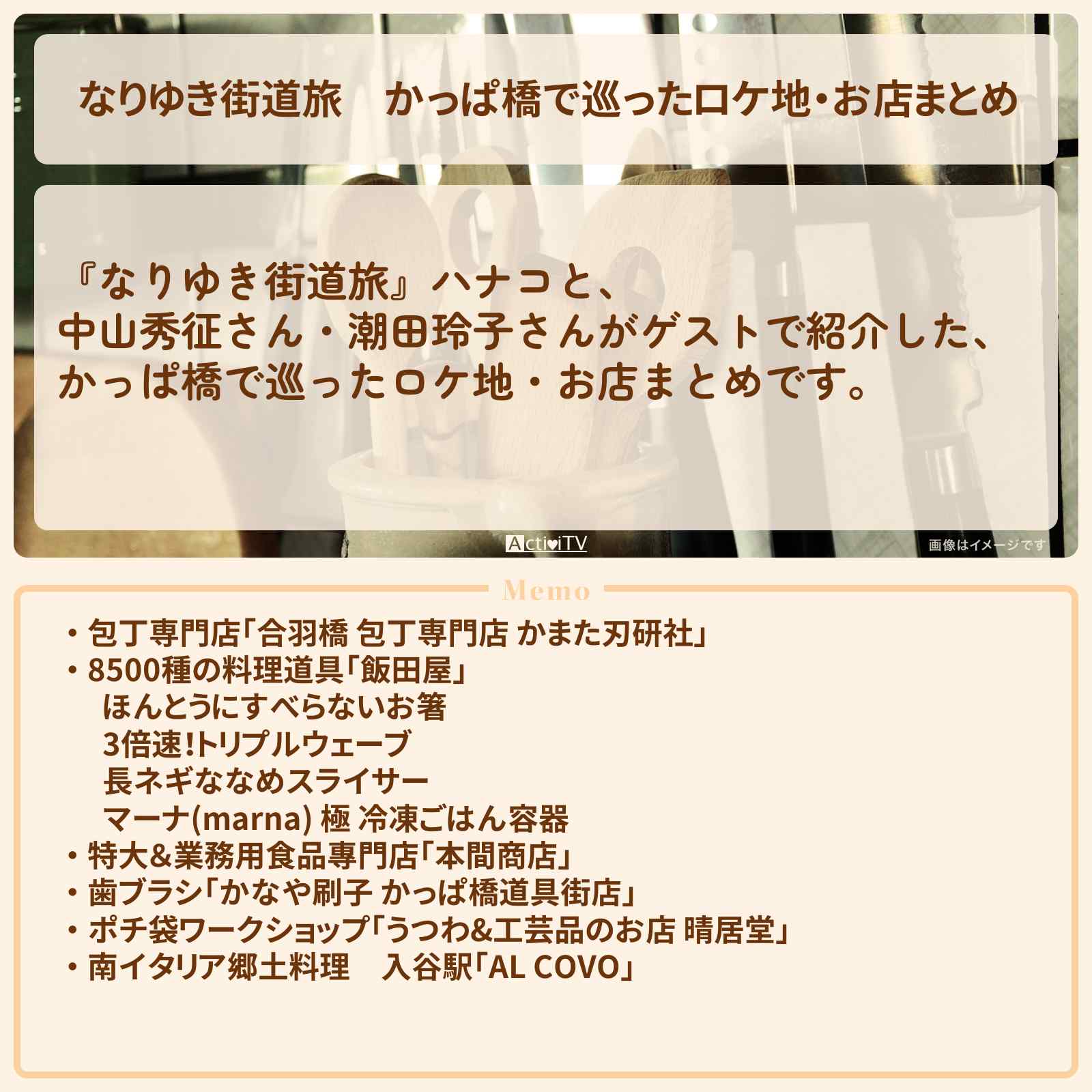 飯田屋は東京浅草にある料理道具の聖地と呼ばれる”超”料理道具専門店です。所狭しと並ぶ料理道具に世界中の料理人が集まります。「マツコの知らない世界」や「タモリ倶楽部」「あさイチ」など各種メディアにも紹介される人気の料理道具店です。…