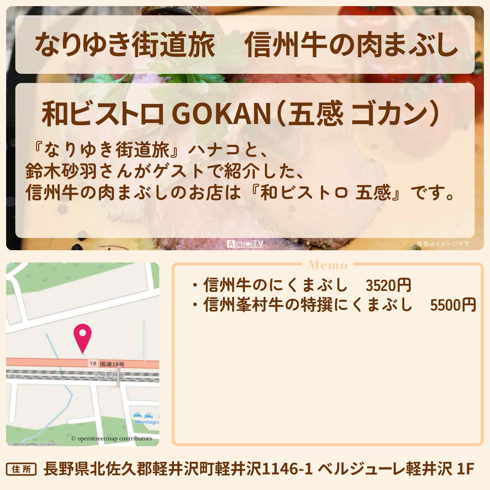 信州牛の贅沢絶品肉まぶし 軽井沢駅「和ビストロ GOKAN(五感 ゴカン)」