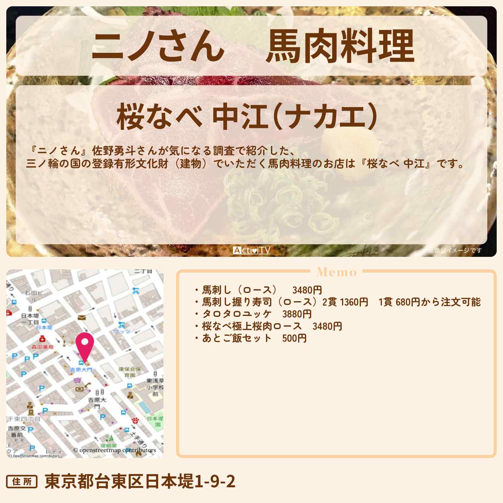 絶品馬肉料理 三ノ輪駅「桜なべ 中江(ナカエ)」